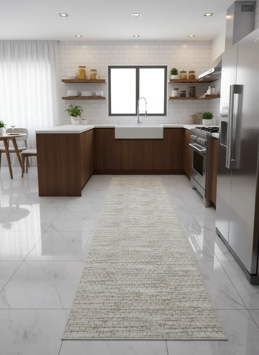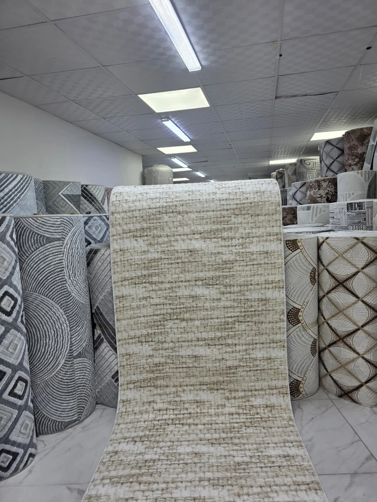 Aksu Krem Bej Art Deco Elmas Yelpaze Halı, krem-beyaz zemin üzerinde bej tonlarında büyük elmas ve yelpaze geometrik motiflerinin kesişmesiyle oluşan Art Deco esinli görkemli kabartmalı desen sunuyor. 1920'lerin mimari zarafetini çağrıştıran bu geometrik kompozisyon, mekânınıza hem tarihi hem çağdaş bir estetik katıyor. Art Deco halı ve geometrik kabartmalı halı arayanlar için Türkiye'nin en özgün seçeneklerinden biri. 900 TL fiyatıyla kapıya teslim edilmektedir.