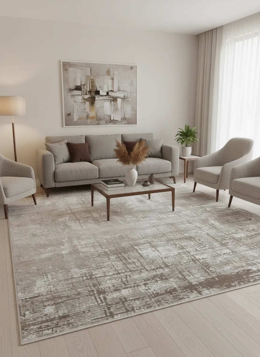 Apex Monoluxe 4062 model vizon vintage çizgili lüks halı. Sıcak vizon zemin üzerinde yatay çizgi dokusu ve vintage eskitme efektleriyle modern lüks dekorasyona mükemmel katkı sağlar. 200x290 cm, kaymaz taban, leke tutmaz yüzey.