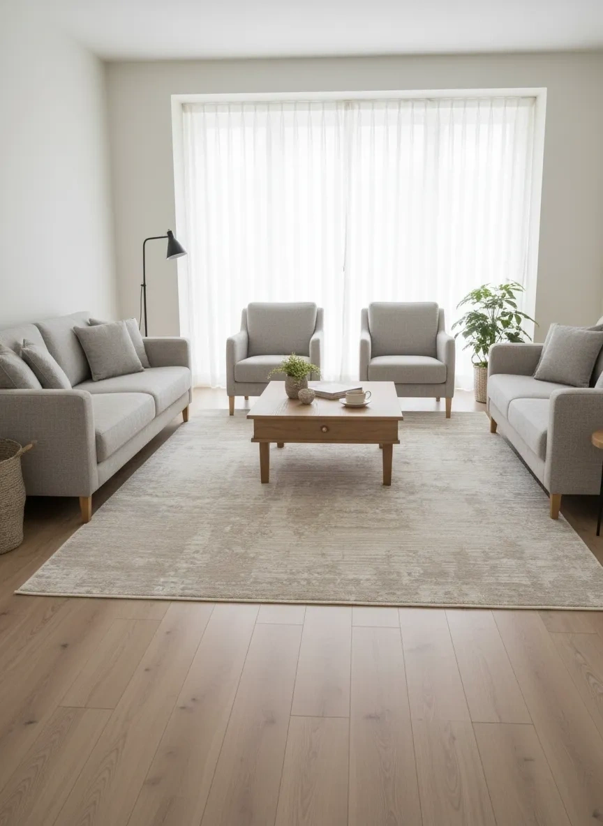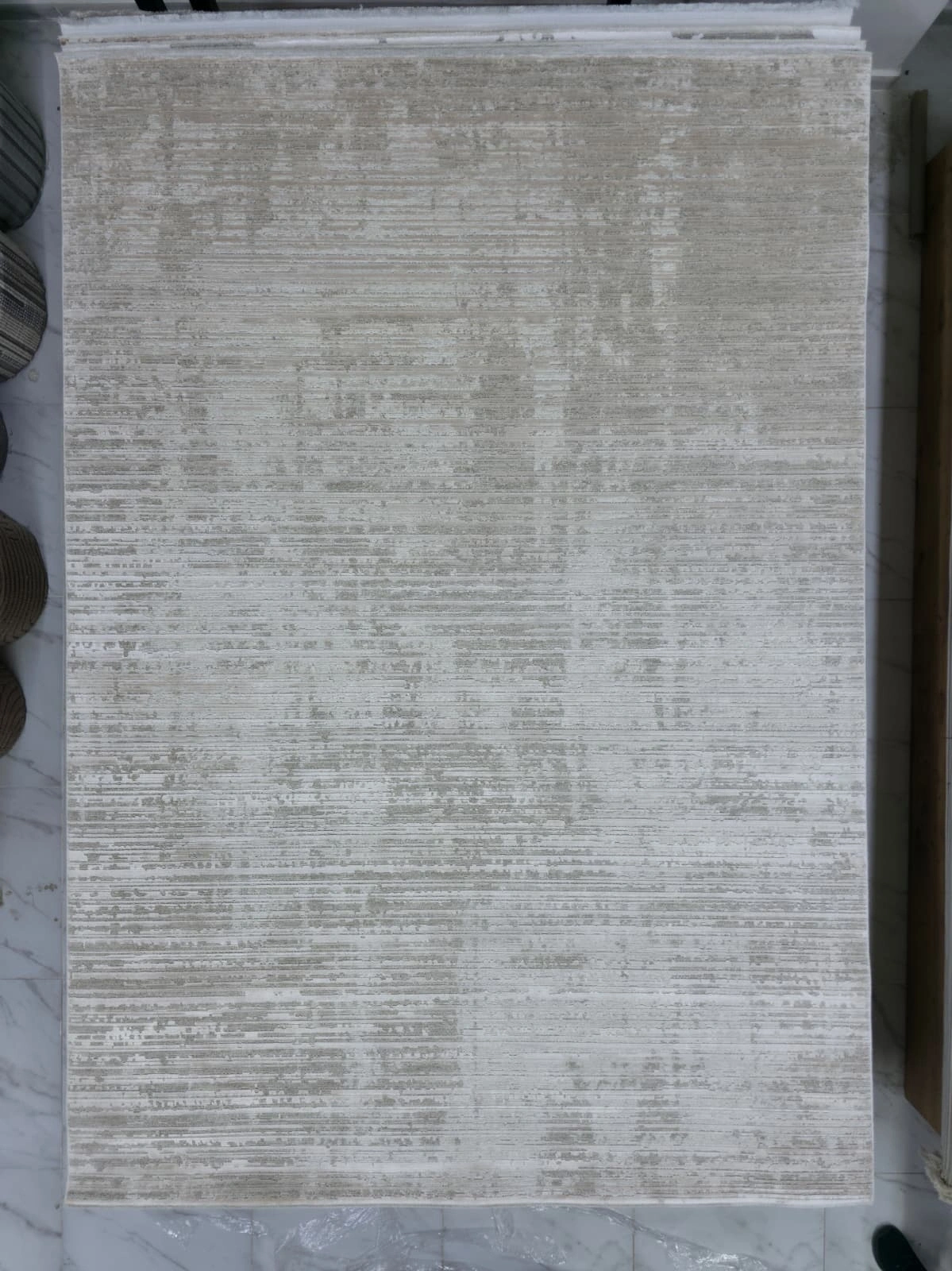 Apex Monoluxe 4072 model bej yatay çizgili lüks halı. Doğal bej zemin üzerinde ince yatay çizgi dokusuyla sade ve şık bir görünüm sunar. Minimalist ve modern iç mekânlara ideal tercih. 200x290 cm, kaymaz taban, anti-alerjik.