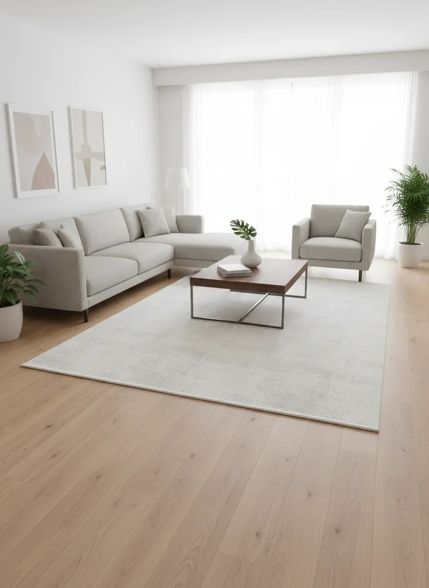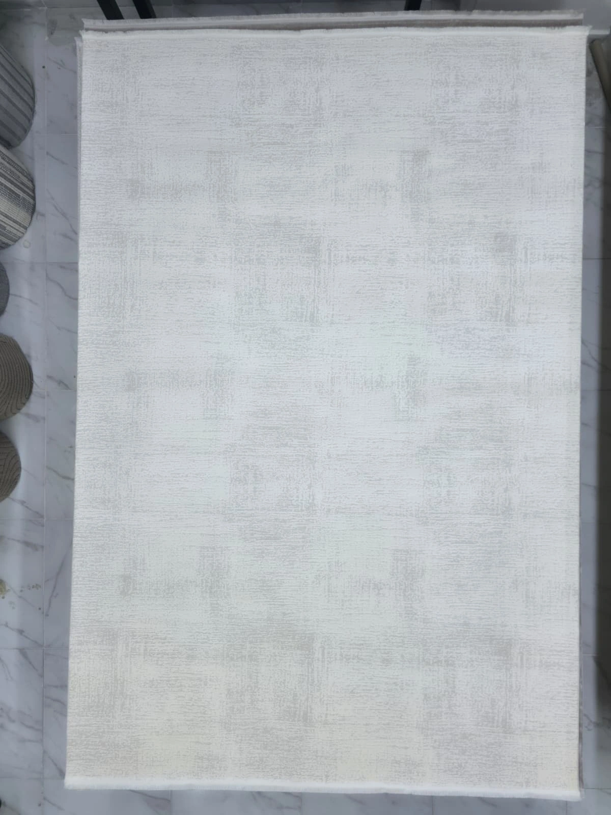 Apex Truva 6641TR model krem hafif dokulu vintage halı. Neredeyse düz görünen krem zemin üzerinde ince vintage doku detaylarıyla minimalist ve doğal bir estetik sunar. 200x290 cm, kaymaz taban, anti-alerjik.