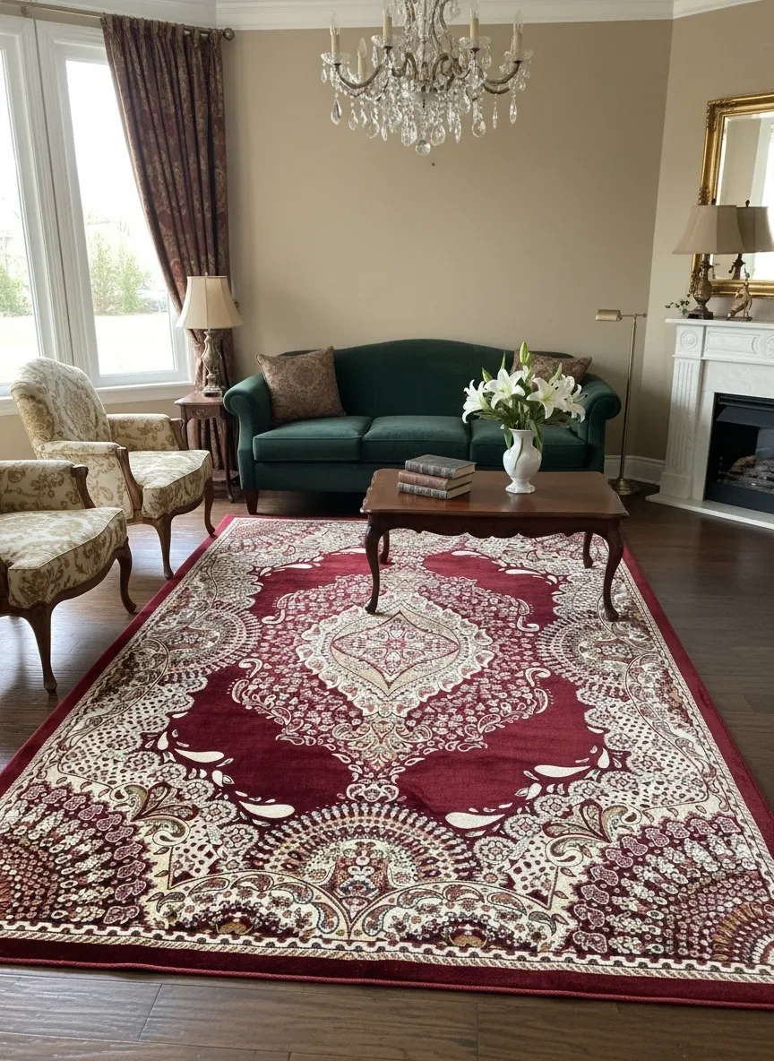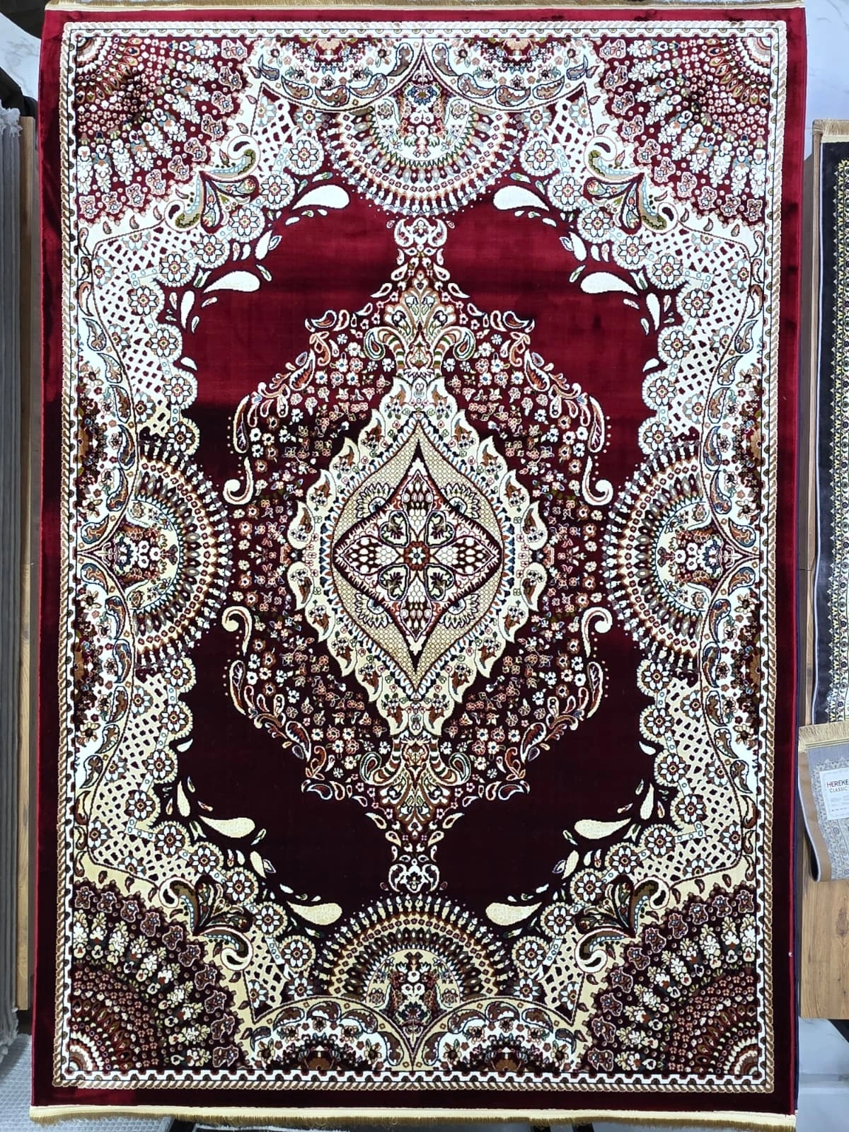 Asar Yün İpek H4015A Koyu Kırmızı Bahçe Bölmeli Klasik Halı 200x290