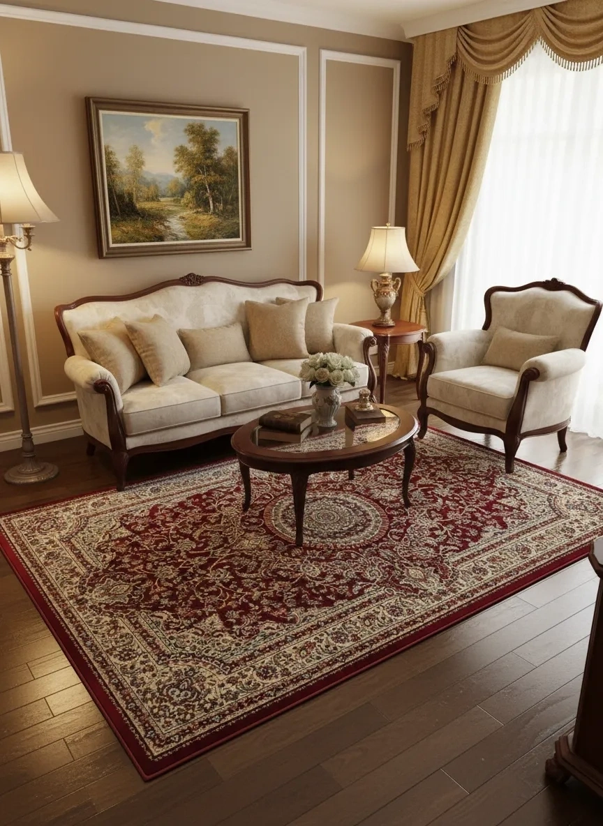 • Asar Yün İpek H4095A Koyu Kırmızı, yün ve ipek karışımıyla üretilen bu model, koyu kırmızı zemin üzerinde tümü kaplayan yoğun çiçekli allover desenin İran İsfahan ve Kum halılarının titiz el dokuması yoğunluğunu yakaladığı görkemli bir salon halısı. Krem çiçekli motifler ve zengin arabesk bordür, 150x233 cm boyutunda mekânınıza benzersiz bir prestij sunuyor.