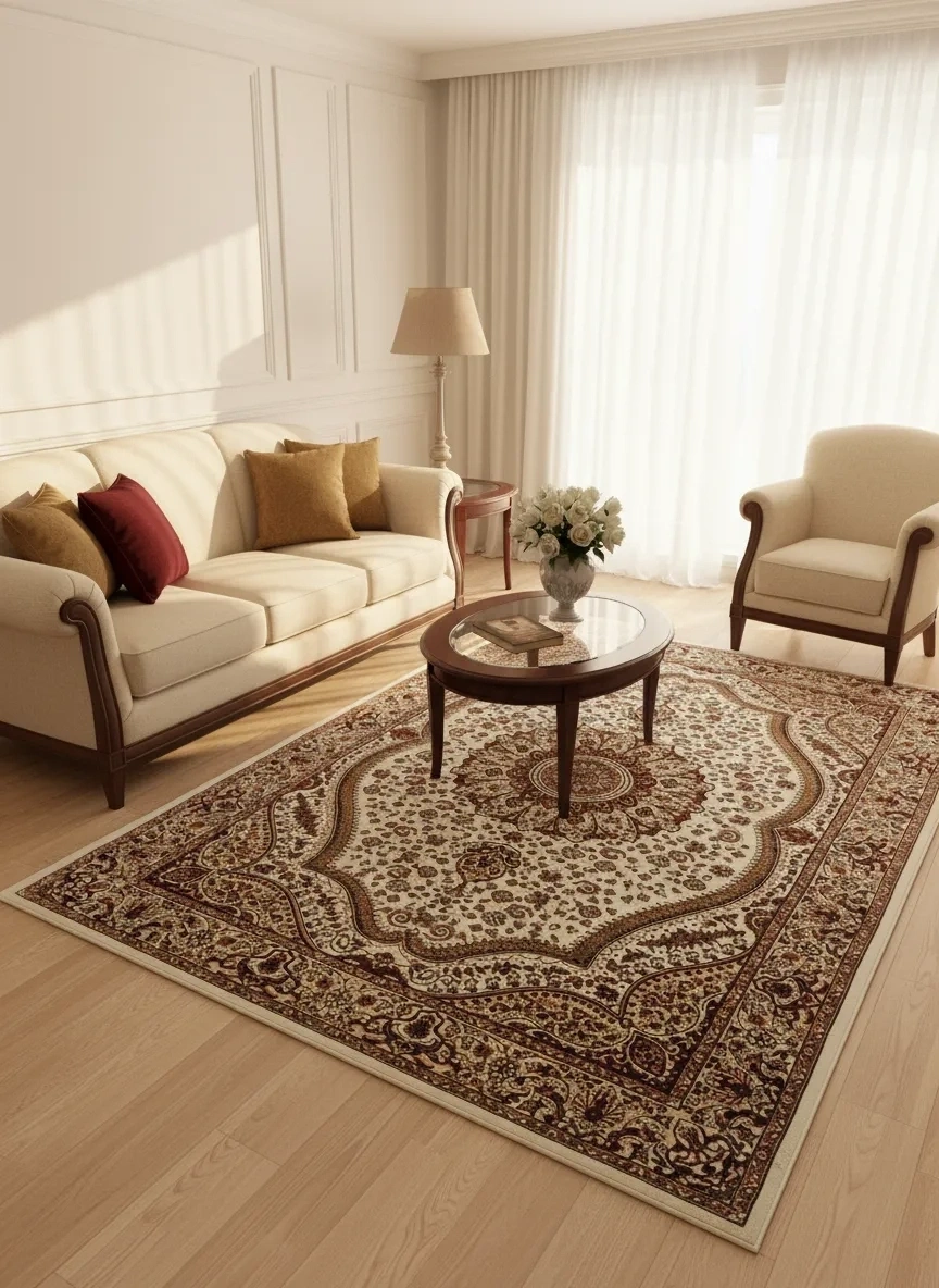 Asar Yün İpek H4158A Krem Madalyonlu Klasik Halı | 200x290 cm | Yün İpek | Salon Halısı | Krem Halı Fiyatları