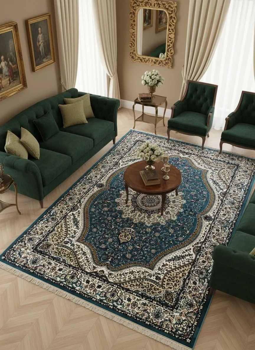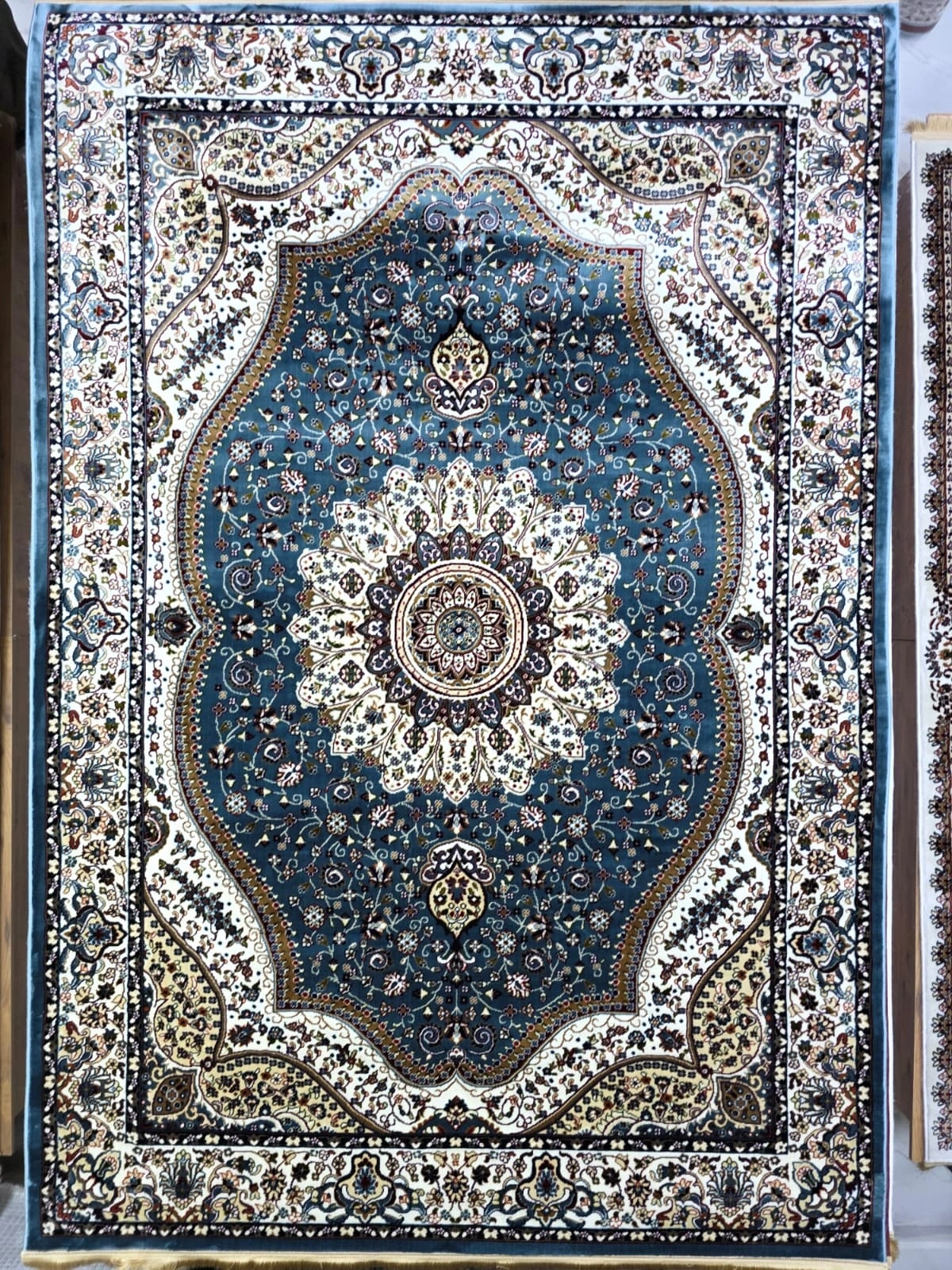 • Asar Yün İpek H4158A Mavi, petrol mavisi zemini üzerine merkezde büyük çiçekli madalyon ve dört köşede köşe motifleriyle zenginleştirilmiş lüks bir klasik halıdır. Mavi klasik halı arayanlar için en şık seçeneklerden biri olan bu ürün, yün ve ipek karışımı dokusuyla uzun ömür vaadeder. 200x290 cm boyutu büyük salon kullanımı için uygundur. Klasik halı markaları içinde Asar, bu modelde de üstün kaliteyi uygun fiyatla sunmaktadır.