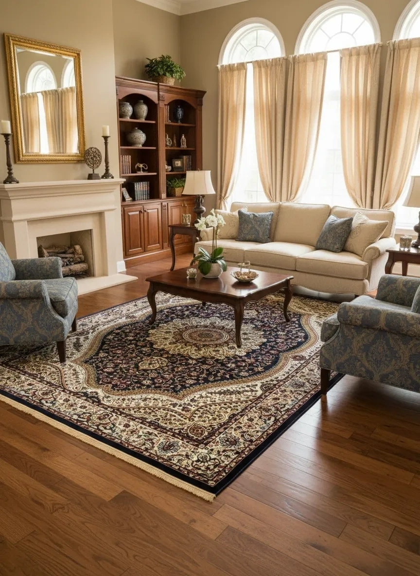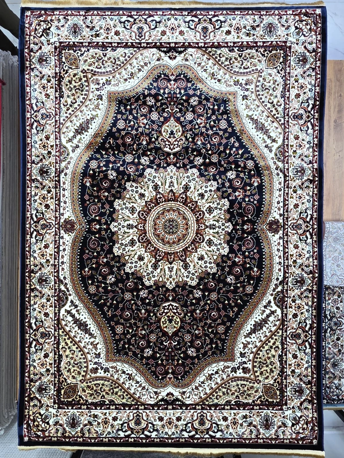 • Asar Yün İpek H4158G Lacivert modeli, koyu lacivert zemini üzerine merkezde büyük madalyon ve köşelerde tamamlayıcı motiflerle oluşturulmuş asil görünümlü bir klasik halıdır. Lacivert halı arayanlar için en şık seçeneklerden biri olan bu ürün, yün ve ipek karışımı yapısıyla üst segment kalite sunar. 200x290 cm büyük salon ve oturma odaları için uygun boyuttadır.