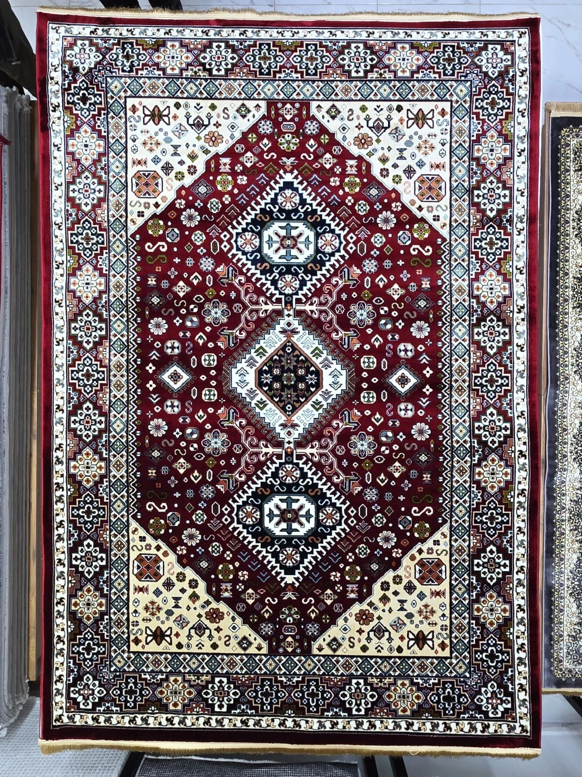 • Asar Yün İpek koleksiyonunun en gözde modellerinden H4320A, koyu kırmızı zemini üzerinde işlenen geleneksel kazak motifleriyle evinize kraliyet havası katar. Yün ve ipek karışımı hammaddesiyle üretilen bu halı, hem görsel hem de dokunsal açıdan üst segment halı markaları arasında öne çıkmaktadır. 200x290 cm boyutuyla büyük salon, oturma odası ve misafir odası kullanımına uygundur. Klasik halı modelleri arayanlar, iran halısı alternatifi isteyenler ve lüks halı fiyatlarında en iyisini arayanlar için mükemmel