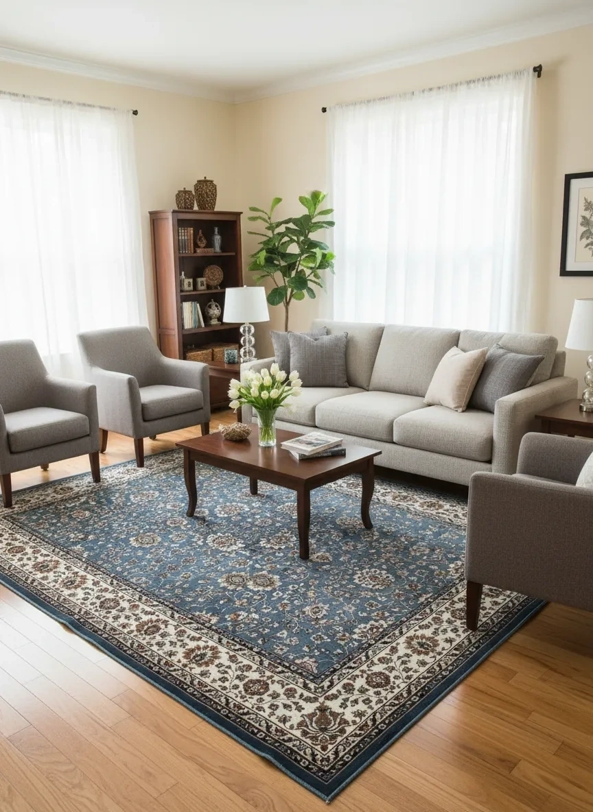 Asar Yün İpek H5500A Mavi Tebriz Çiçekli Klasik Halı | 200x290 cm | Yün İpek | Büyük Salon Halısı | Mavi Halı Fiyatları