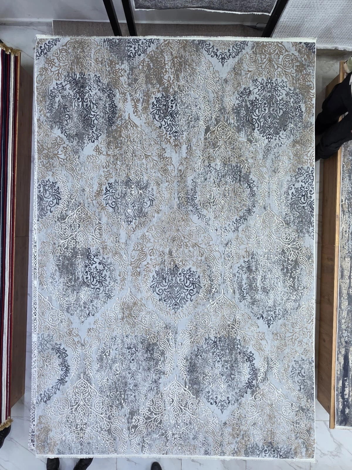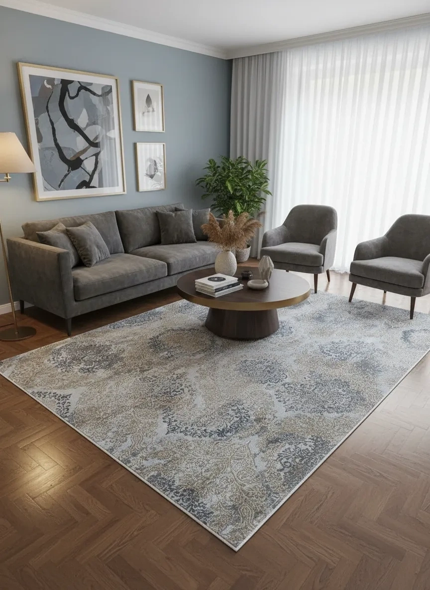 Asar Yün Moda H4850 model mavi modern damask desenli salon halısı. Kaliteli yün iplik kullanımıyla üretilen bu halı, doğal nefes alma özelliği ve yumuşak dokusuyla öne çıkar. 200x290 cm, kaymaz taban, anti-alerjik, uzun ömürlü.