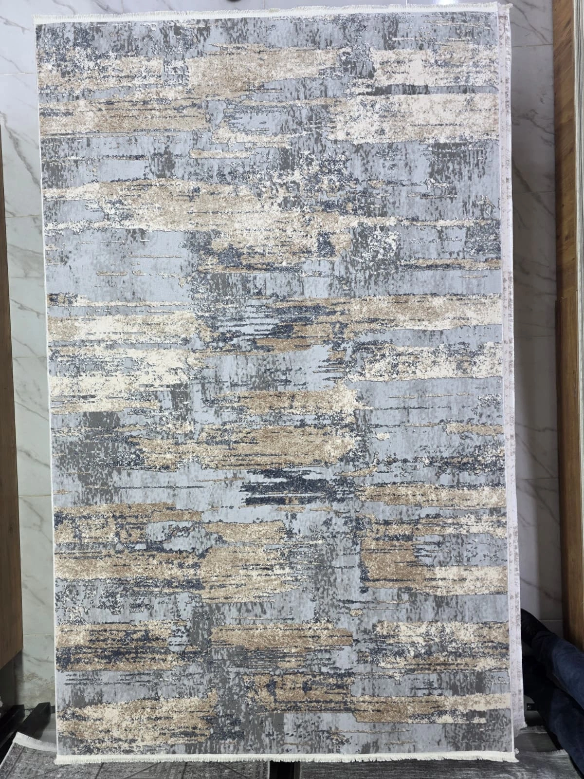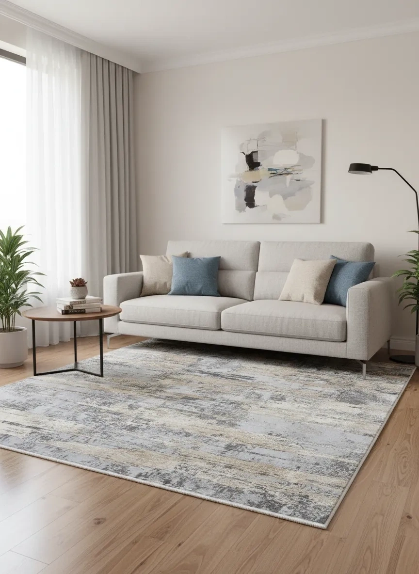 Asaryün Moda H4853 Mavi Gri Soyut Eskitme Salon Halısı 150x233 — Vintage Saçaklı