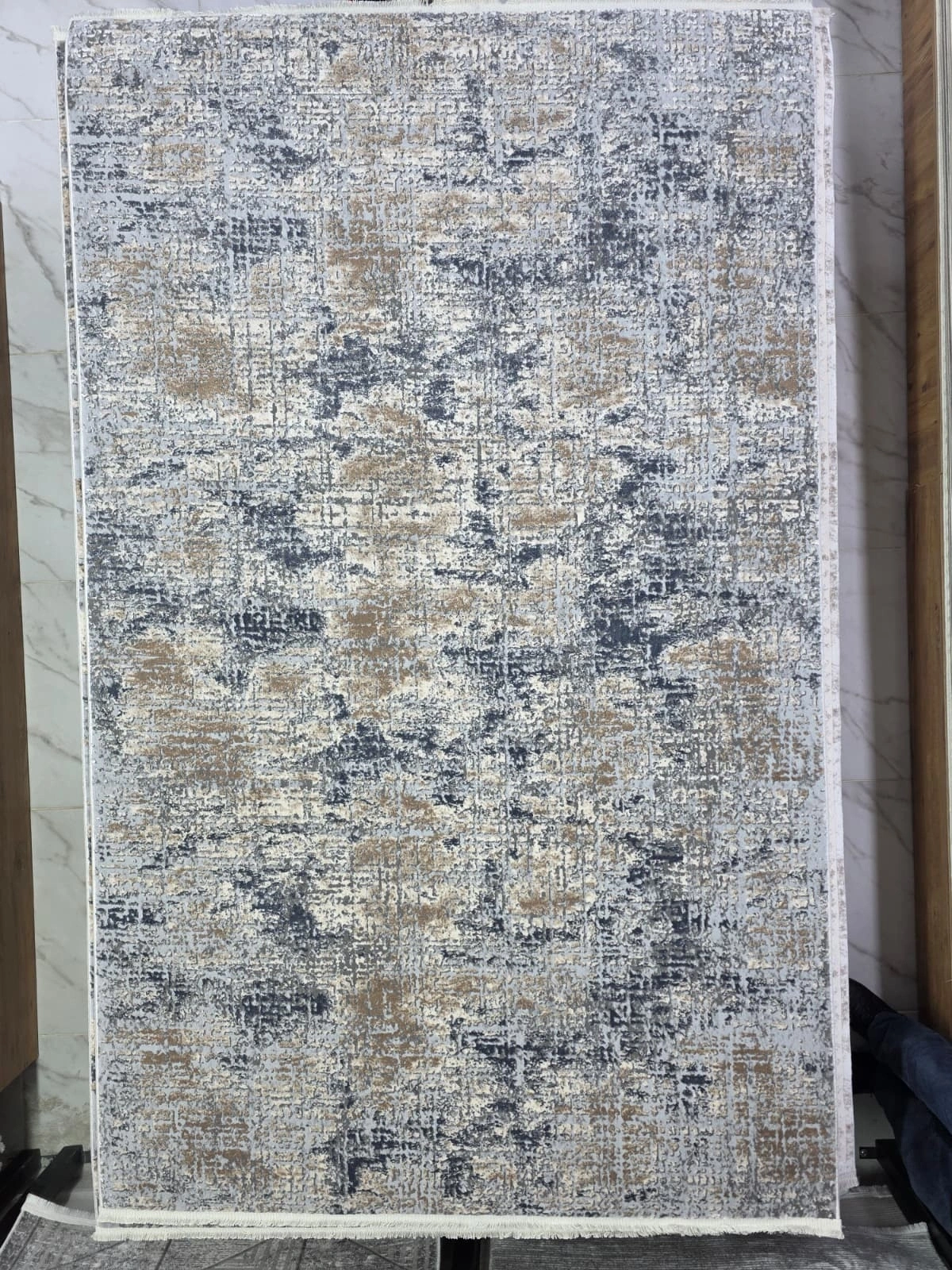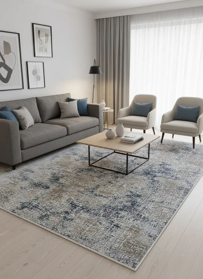 Asaryün Moda H4884 Mavi Gri Soyut Eskitme Grid Salon Halısı 150x233 — Saçaklı
