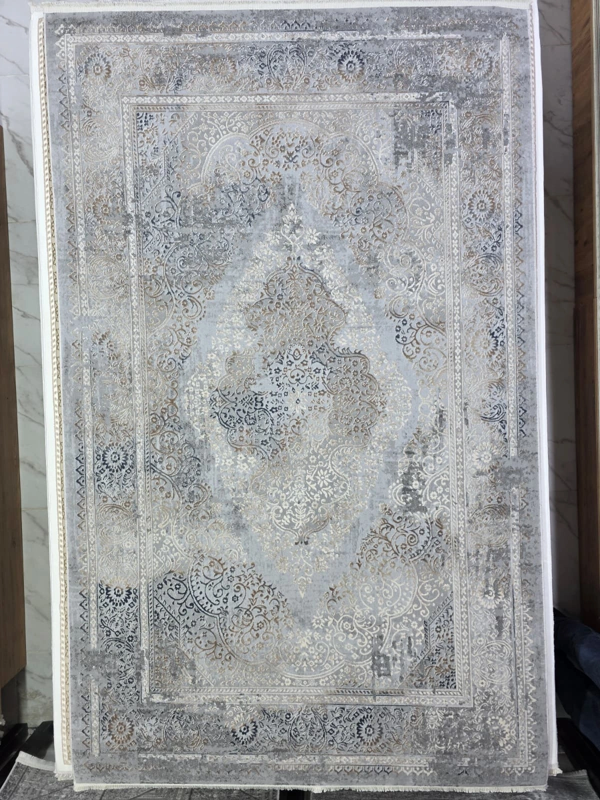 Asaryün Moda H4886 Mavi Gri Çiçekli Klasik Madalyon Salon Halısı 150x233 — Eskitme Saçaklı