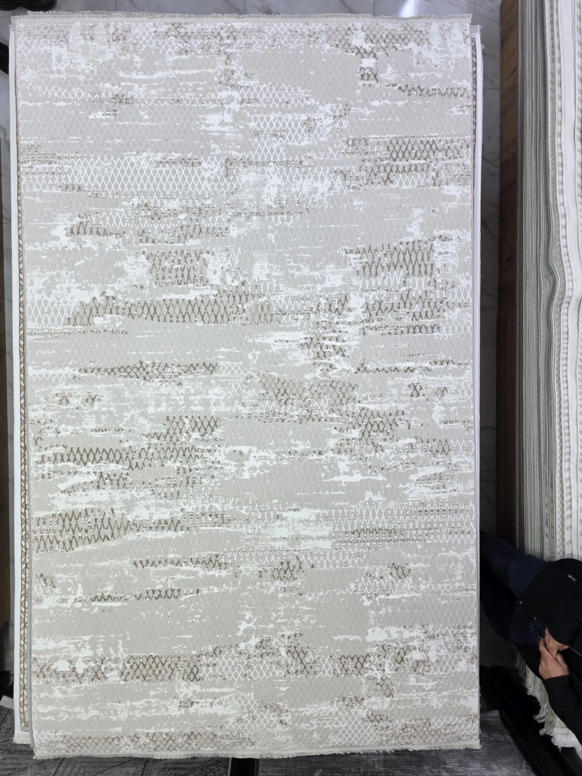 Asaryün Moda H6440 Bej Krem Soyut Eskitme Salon Halısı 150x233 — Organik Desen Saçaklı