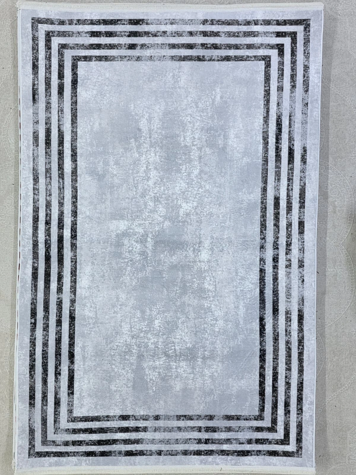 Bellino 4434 Gri Beyaz Eskitme Çerçeveli Halı 120x180