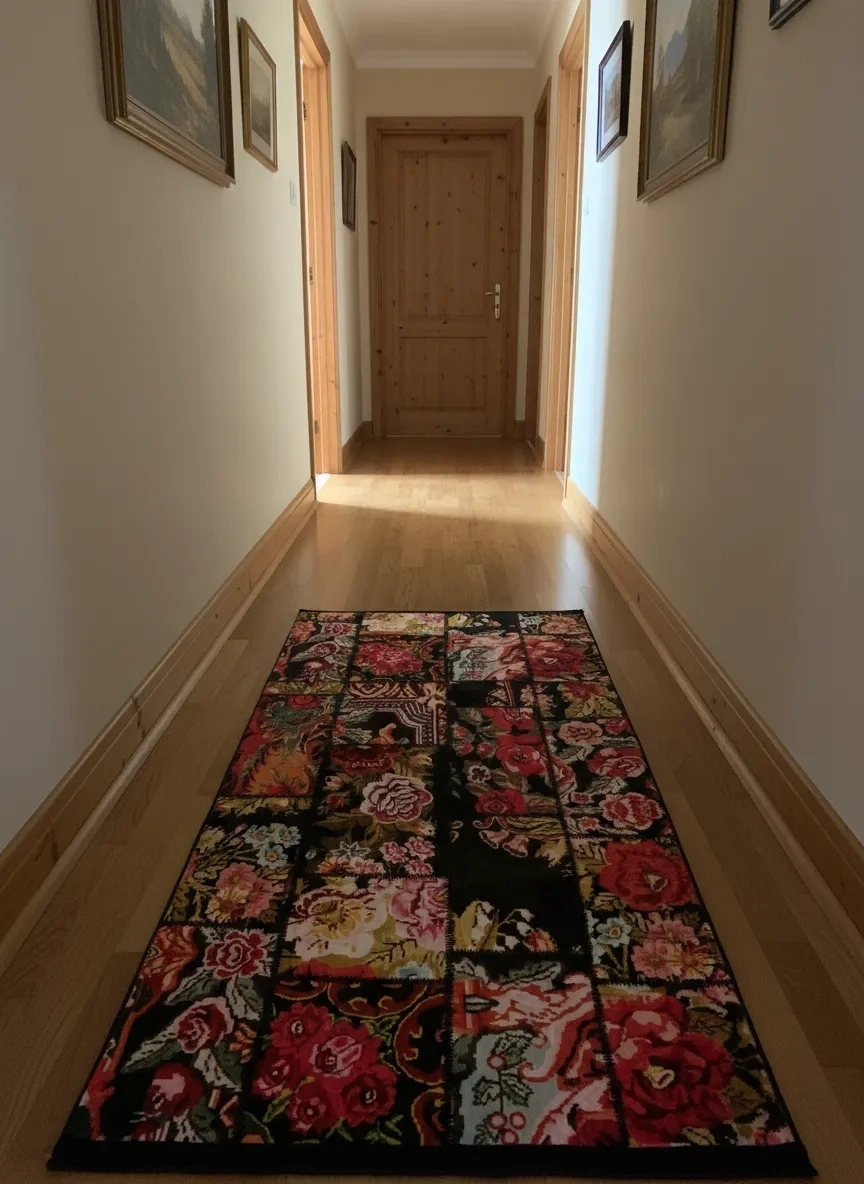 Bellino 4673 Siyah Gül Patchwork Halı, siyah zeminin derin kontrastı üzerinde her biri farklı tür ve boyuttaki gül ve çiçeklerle dolu patchwork karelerle adeta bir çiçek koleksiyonu sergiliyor. Kırmızı, pembe, turuncu ve beyaz güllerle sarmaşık ve yaprak motiflerinin siyah zemindeki zengin patchwork bileşimi, mekânı dramatik bir İngiliz gül bahçesine dönüştürüyor. Romantik ve bohem dekorasyonu sevenler için Türkiye'nin en çarpıcı küçük halı seçeneklerinden biri olan bu model, iran halı ve afgan halı estetiğini çiçek tutkusuyla harmanlıyor. Royal halı ve atlas halı arayanların romantik-bohem arayışına yanıt veren bu ürün, giriş, koridor ve köşe kullanımları için de mükemmel. 80x150 cm boyutuyla uygun fiyata Türkiye genelinde kapıya teslim edilmektedir.