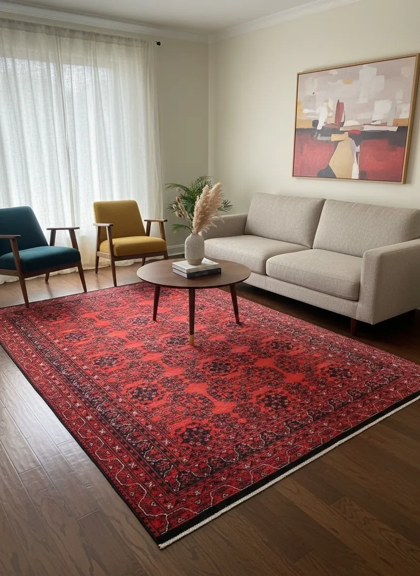 Bellino 4890 Kırmızı Siyah Halı, geleneksel Afgan halıcılığının ruhunu modern dokuma teknolojisiyle buluşturuyor. Ateş kırmızısı zemin üzerinde birbirini izleyen geometrik madalyonlar ve siyah bordür detayları, mekânınıza güçlü ve prestijli bir atmosfer katar. Afgan halı, iran halı ve merinos halı arayanların ilk tercihi olan bu model, yoğun desen yapısı ve yüksek dayanıklılığıyla uzun yıllar boyunca değerini korur. 160x230 cm boyutuyla geniş salon ve oturma odalarına mükemmel uyum sağlar. Royal halı ve atlas halı kalitesinde bir ürünü uygun halı fiyatıyla sunan bu model, Türkiye genelinde en çok aranan halı modelleri arasında yerini almaktadır. Kolay temizlenebilir yüzey yapısı ve güçlü dokuma altyapısıyla aile evleri için ideal bir yatırımdır.