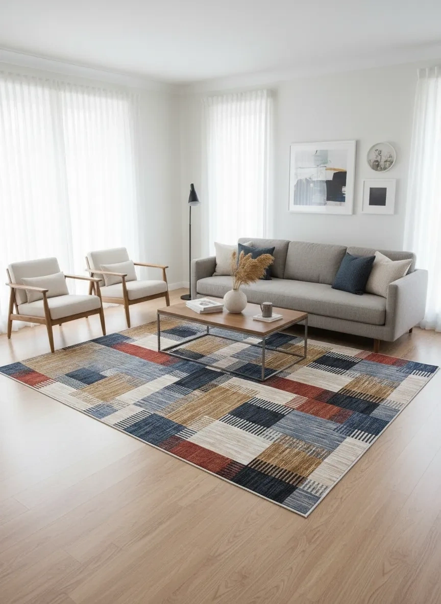 Bellino 4936 Mavi Kırmızı Patchwork Blok Halı 160x230