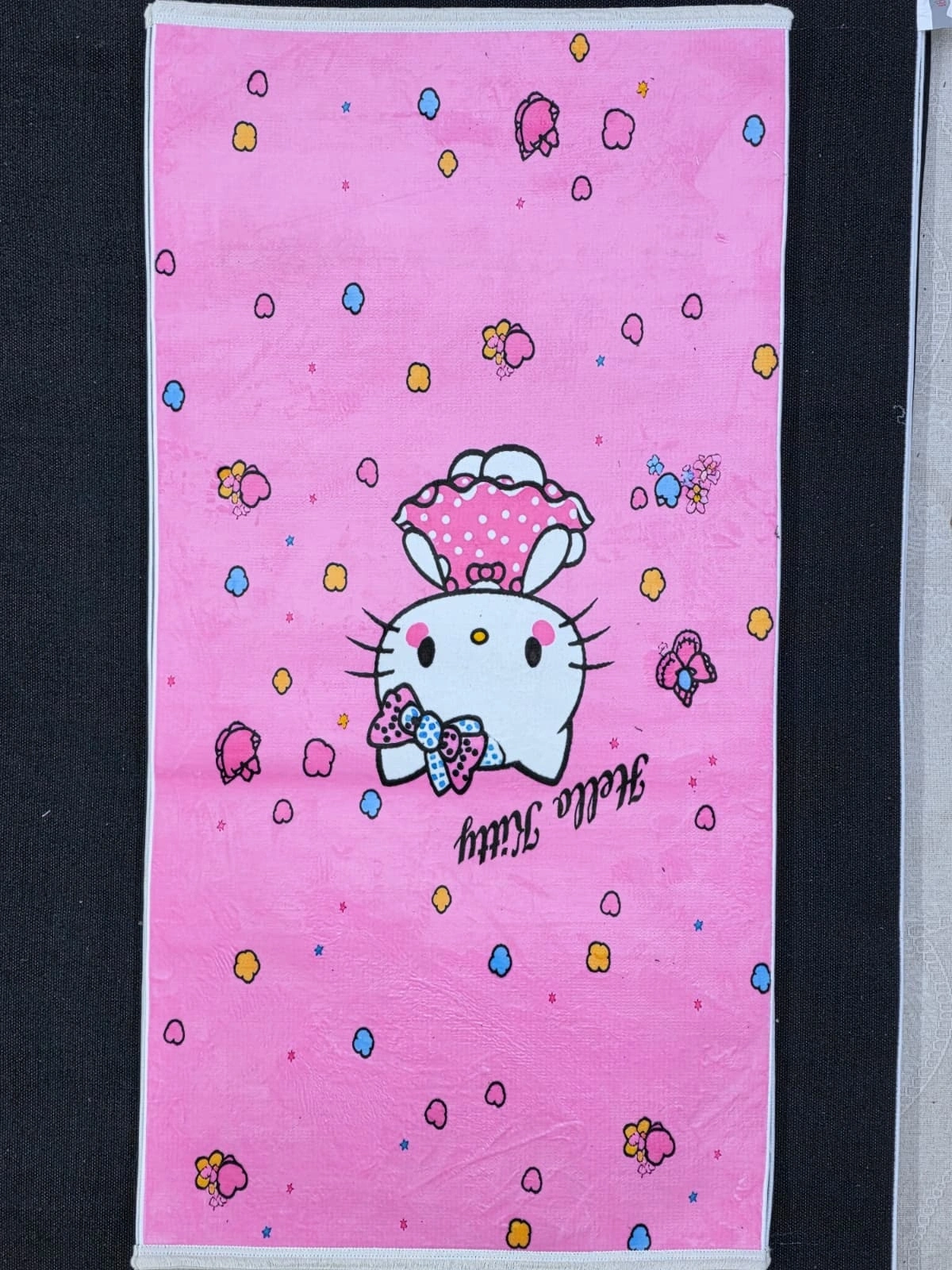 • Bellino 5480, canlı pembe zemin üzerinde sevimli kedi karakteri, renkli kalpler, çiçekler ve kelebek figürleriyle kız çocuklarının en neşeli arkadaşı olmaya aday şeker gibi bir oyun halısı. 80x150 cm boyutuyla bebek odası ve kız çocuk odaları için en şeker zemin seçimi.
