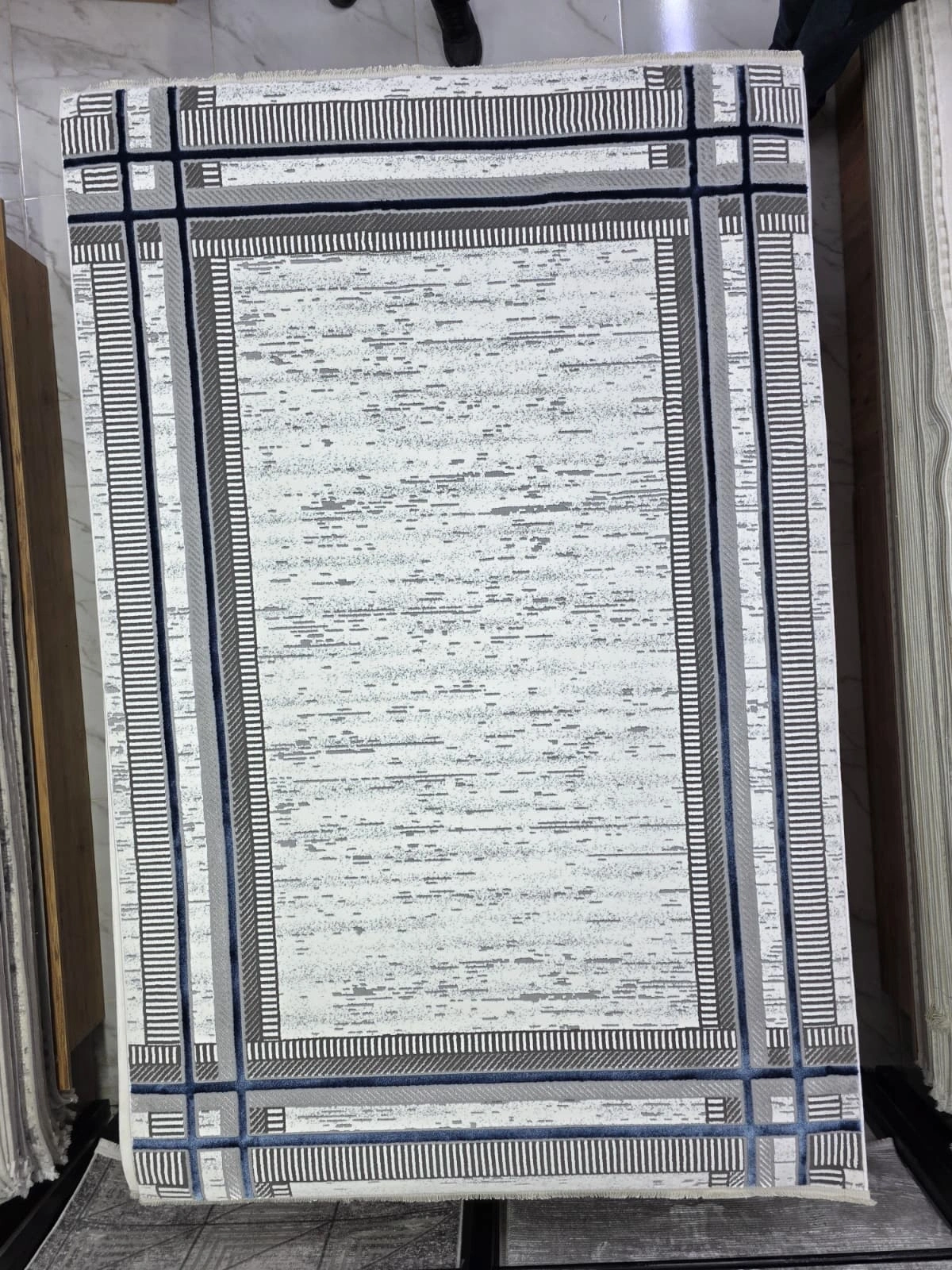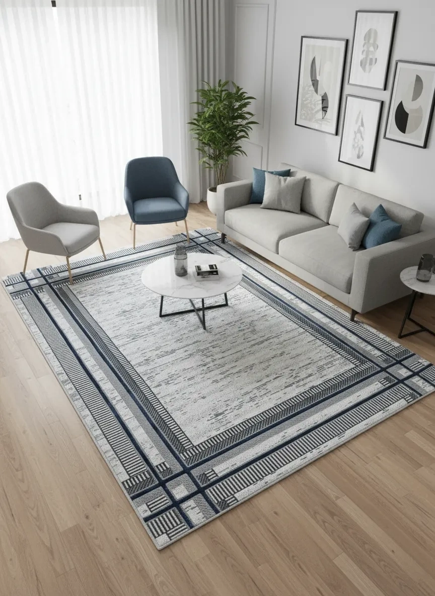 Çapan Armoni H6811A Gri Lacivert Çerçeveli Salon Halısı 160x230 — Peluş Flosh Soyut