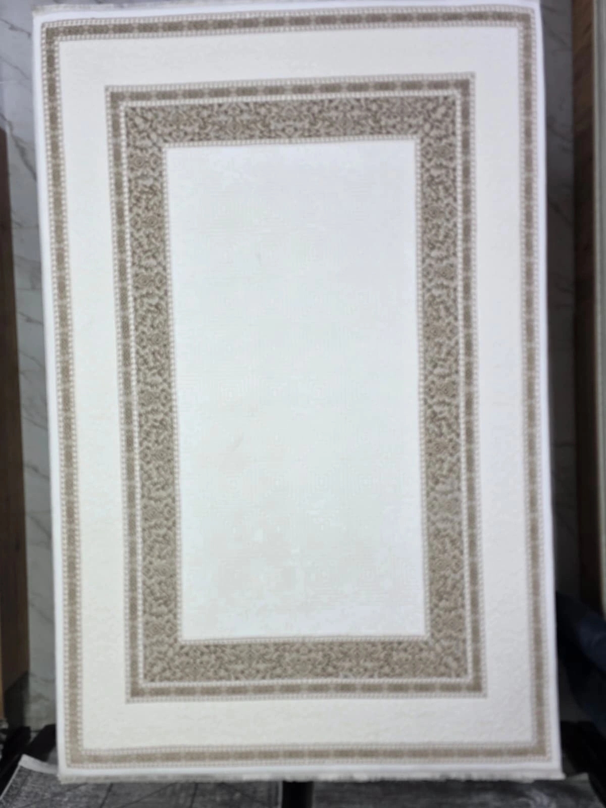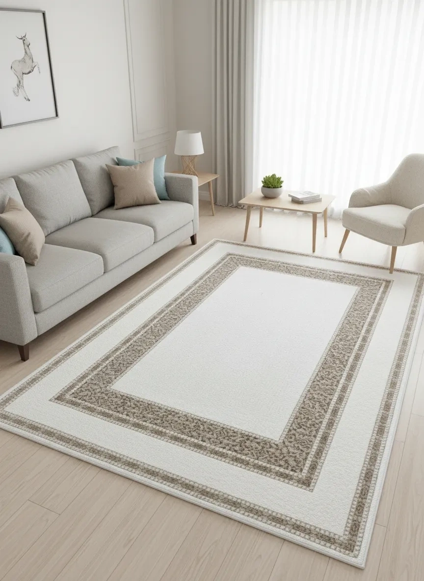 Çapan Armoni H6893A Beyaz Vizon Arabesk Çerçeveli Salon Halısı 160x230 — Flosh Peluş Lüks