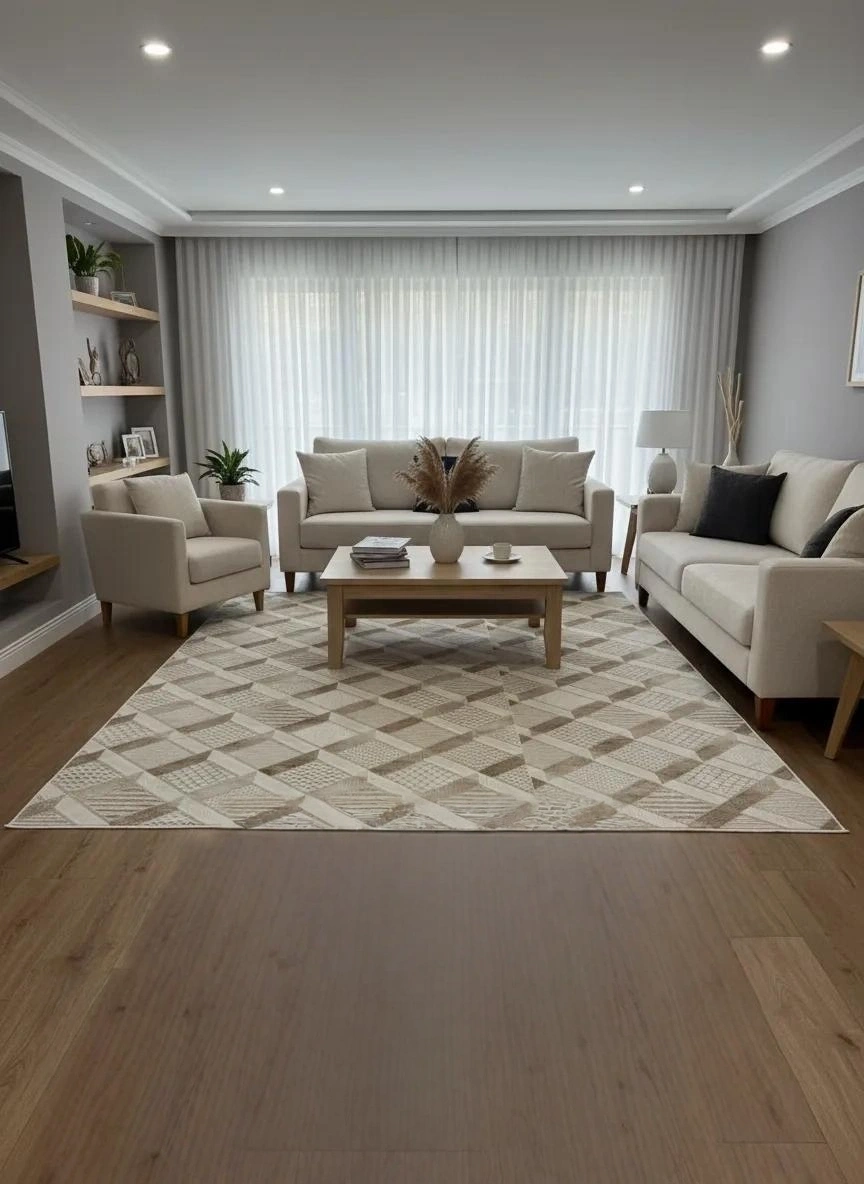 Dinarsu D003 Bej Patchwork Halı | Çok Dokulu Geometrik Halı