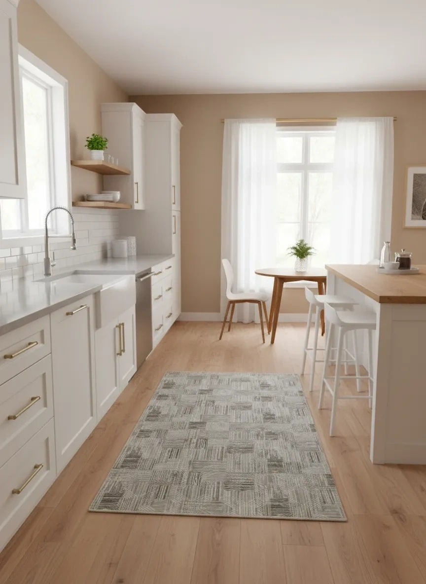 Dinarsu D006 Gri-Bej Halı, gri ve bej tonlarının birbirinden farklı doku ve çizgi efektleriyle oluşturduğu kare blok kompozisyonuyla mekânlara sofistike ve çok katmanlı bir zemin deneyimi sunar. Her kare bloğun kendi içinde farklı bir doku taşıması, halıya üç boyutlu bir derinlik ve görsel zenginlik kazandırır. Gri ve bej renk kombinasyonu, iç mekân tasarımında en evrensel ve uzun ömürlü uyum ikililerinden biridir. Bu halı oturma odası, yemek odası, antre, koridor ve yatak odası gibi evin her alanında sorunsuzca kullanılabilir; her tür mobilya stili ve dekorasyon tercihiyle uyumlu çalışır. Dinarsu'nun kaliteli üretimi ile bu çok dokulu tasarım, yoğun kullanım altında bile renk ve desen bütünlüğünü uzun yıllar korur.