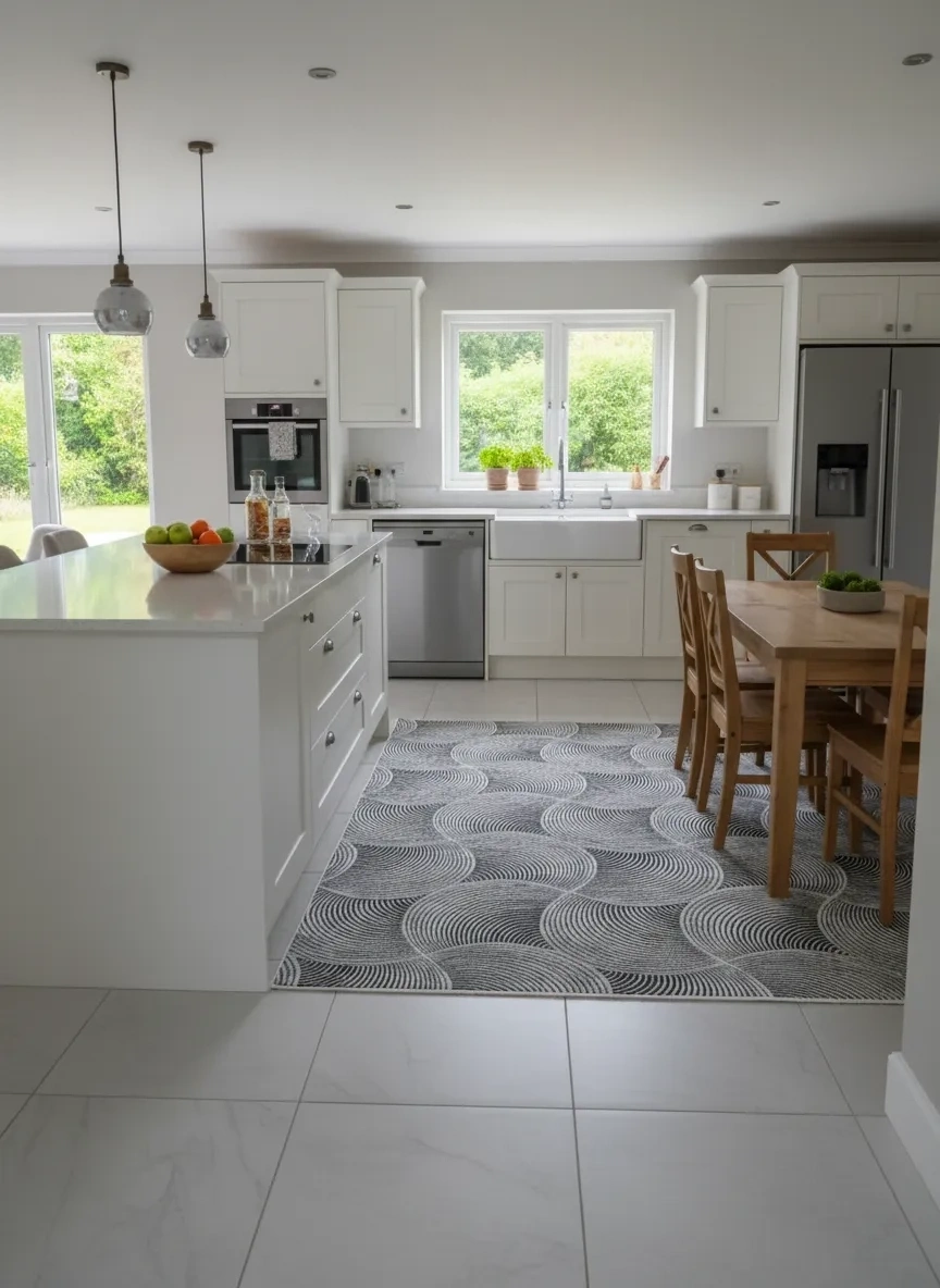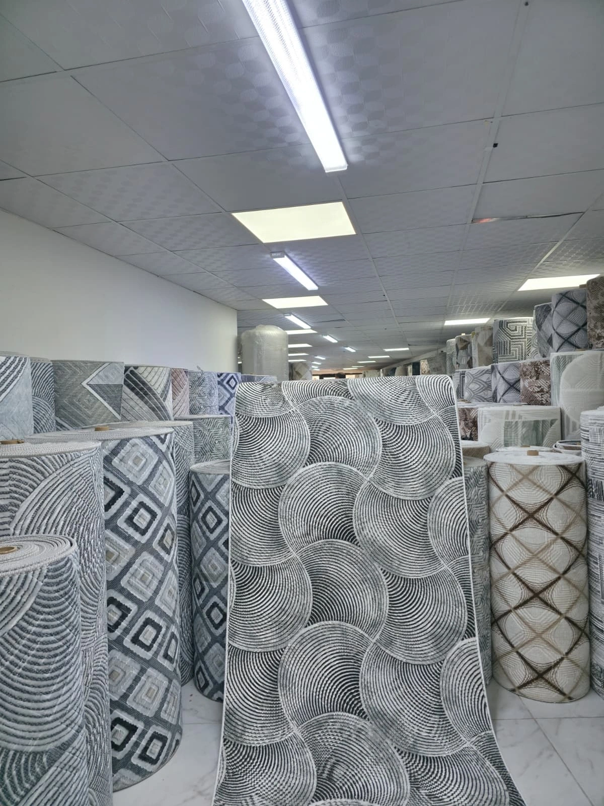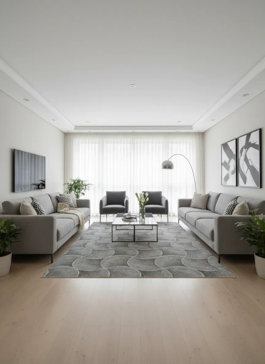 Dinarsu D011 Gri Spiral Halı, gri ve beyaz tonlarında iç içe geçen spiral ve daire formlarının oluşturduğu dinamik ve modern bir kompozisyon sunar. Bej versiyonundan farklı olarak, gri tonun soğuk ve modern etkisi bu halıya daha sert ve çarpıcı bir karakter kazandırır; oturma odası, yemek odası, antre, koridor ve çalışma odası gibi evin her alanında güçlü bir görsel odak oluşturur. Gri renk, günümüz iç mekân tasarımının en çok tercih edilen nötr tonlarından biri olmaya devam etmektedir. Bu halı, gri rengin soğuk modernliğini spiral desenin organik akışkanlığıyla birleştirerek özgün bir denge yaratır. Siyah, beyaz, antrasit ve renkli aksanlı dekorasyonlarla mükemmel uyum sağlar. Dinarsu'nun dayanıklı makine dokuması, bu özgün tasarımı uzun yıllar boyunca canlılığıyla sunar.