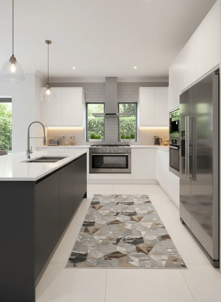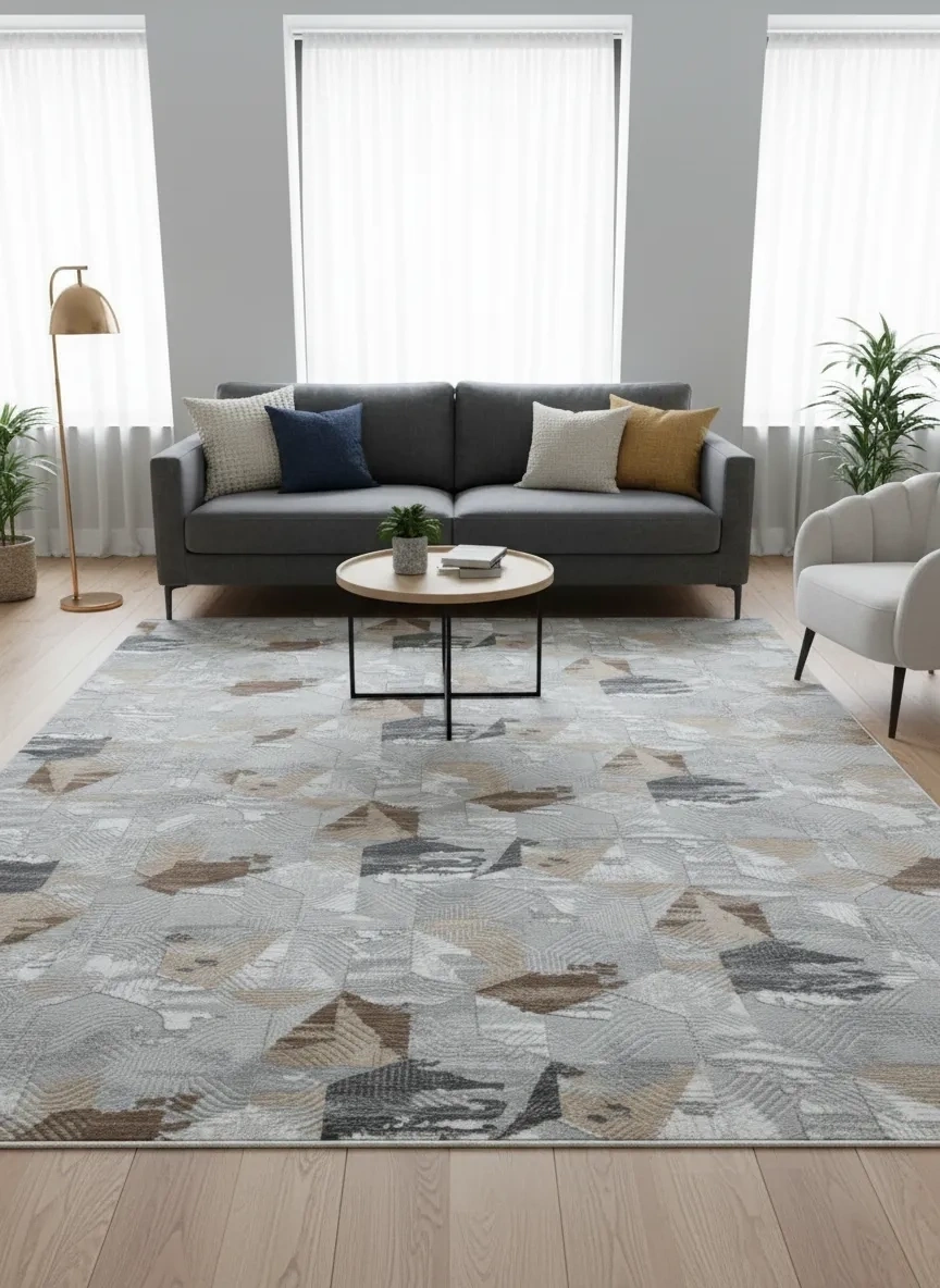Dinarsu D014 Bej-Kahve Soyut Karma Halı, gri, kahve, bej ve beyaz tonlarının soyut formlar ve geometrik çerçeveler içinde bir araya geldiği sofistike ve çok katmanlı bir tasarım sunar. Soyut leke ve geometrik formların bir arada kullanılması, halıya hem sanatsal hem de yapısal bir ifade kazandırır; oturma odası, yemek odası, antre, koridor ve misafir odası gibi temsil alanlarında prestijli bir zemin oluşturur. Bu karma desen anlayışı, hem soyut sanat severlere hem de geometrik düzen tercih edenlere aynı anda hitap eder. Çağdaş, modern klasik ve eklektik tarzda dekore edilmiş mekânlarda güçlü bir zemin ifadesi sunan bu halı, nötr renk paleti sayesinde her dekorasyon stiliyle uyumludur. Dinarsu'nun kaliteli makine dokuması, bu sofistike tasarımı uzun yıllar boyunca şıklığıyla sunar.