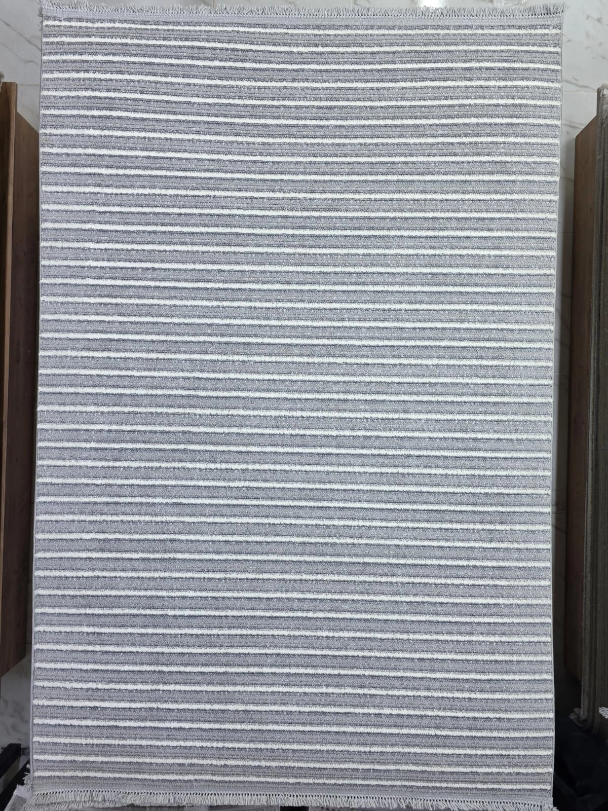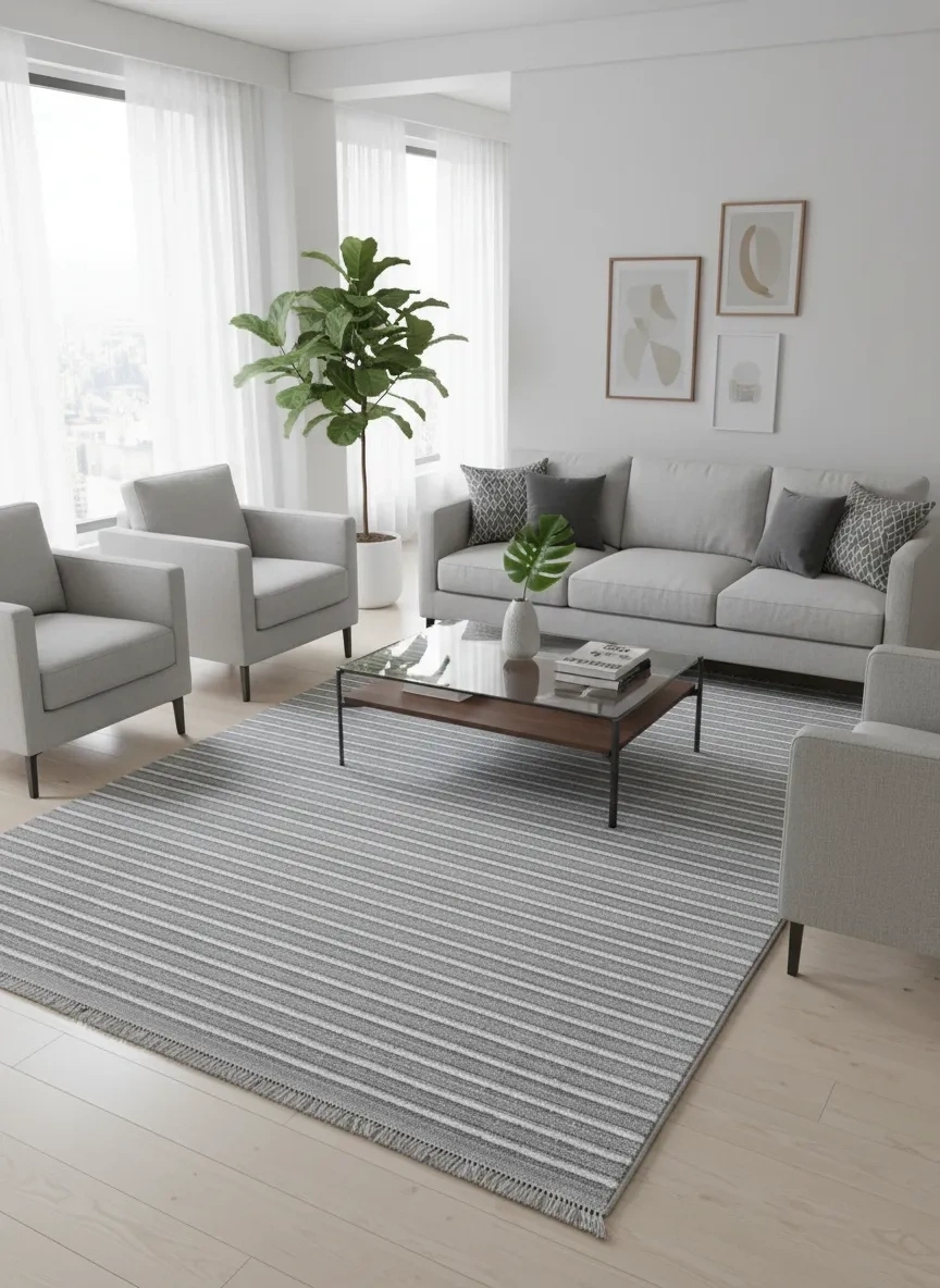 Excellence Golf GF4 Açık Gri Çizgili Salon Halısı 150x220 - Kadifemsi Modern Saçaklı