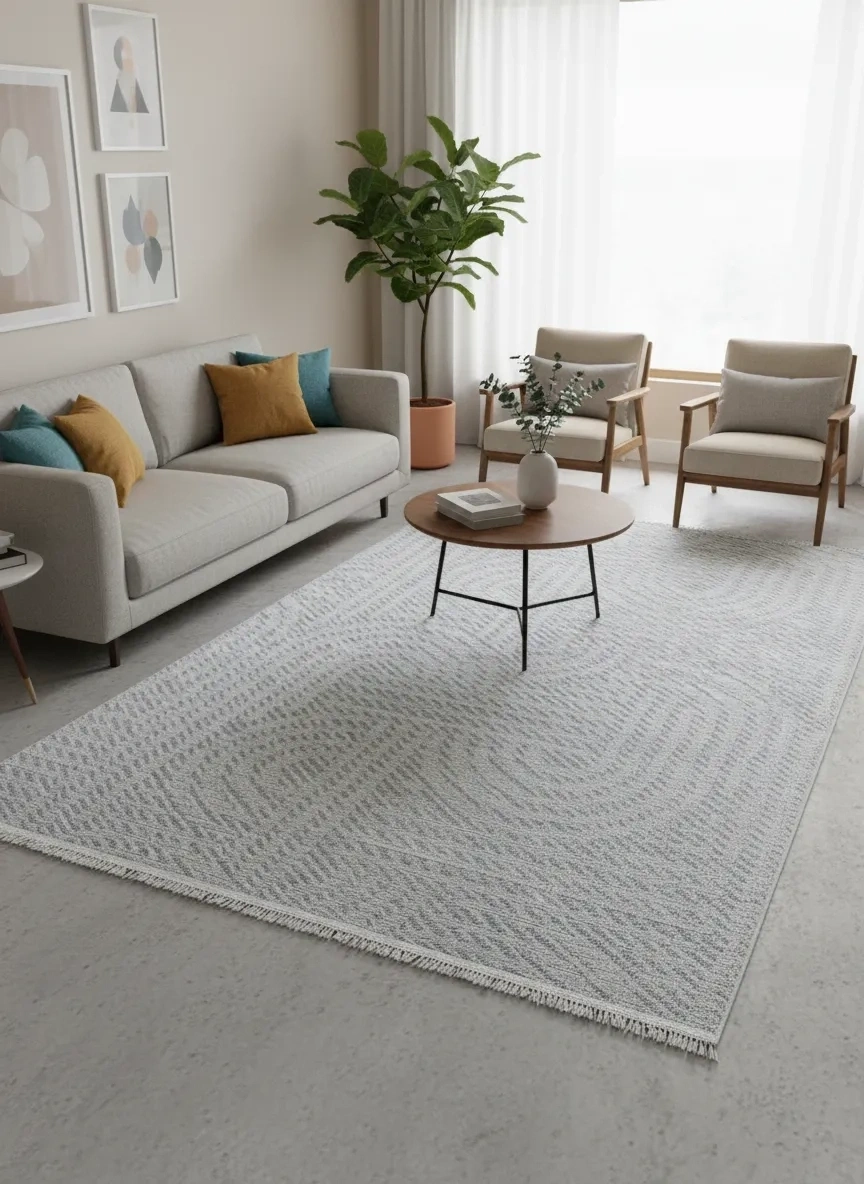 • Bu halı saçaklı yapısıyla şık bir görünüm sunar; robot süpürge dostudur, anti-alerjenik özelliği sayesinde sağlıklı bir ortam sağlar, leke tutmaz yüzeyi ile bakımı kolaydır ve makinede yıkanabilir. Gri renk seçeneği ve geometrik desenli, soyut desenli yapısıyla mekânınızı yeniden tanımlayan bu 150x220 boyutunda ideal ölçüleriyle halı, uzun yıllar ilk günkü görünümünü korur.