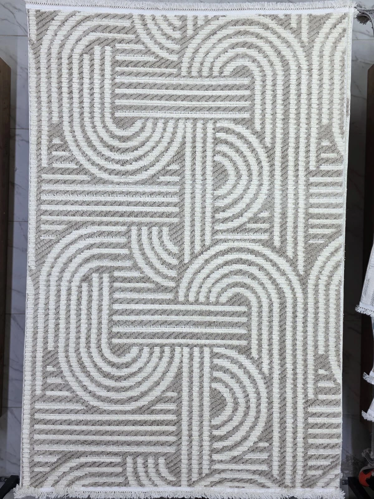 Excellence Golf GF705 Krem Vizon Soyut Modern Salon Halısı 150x220 - Kıvrım Desen