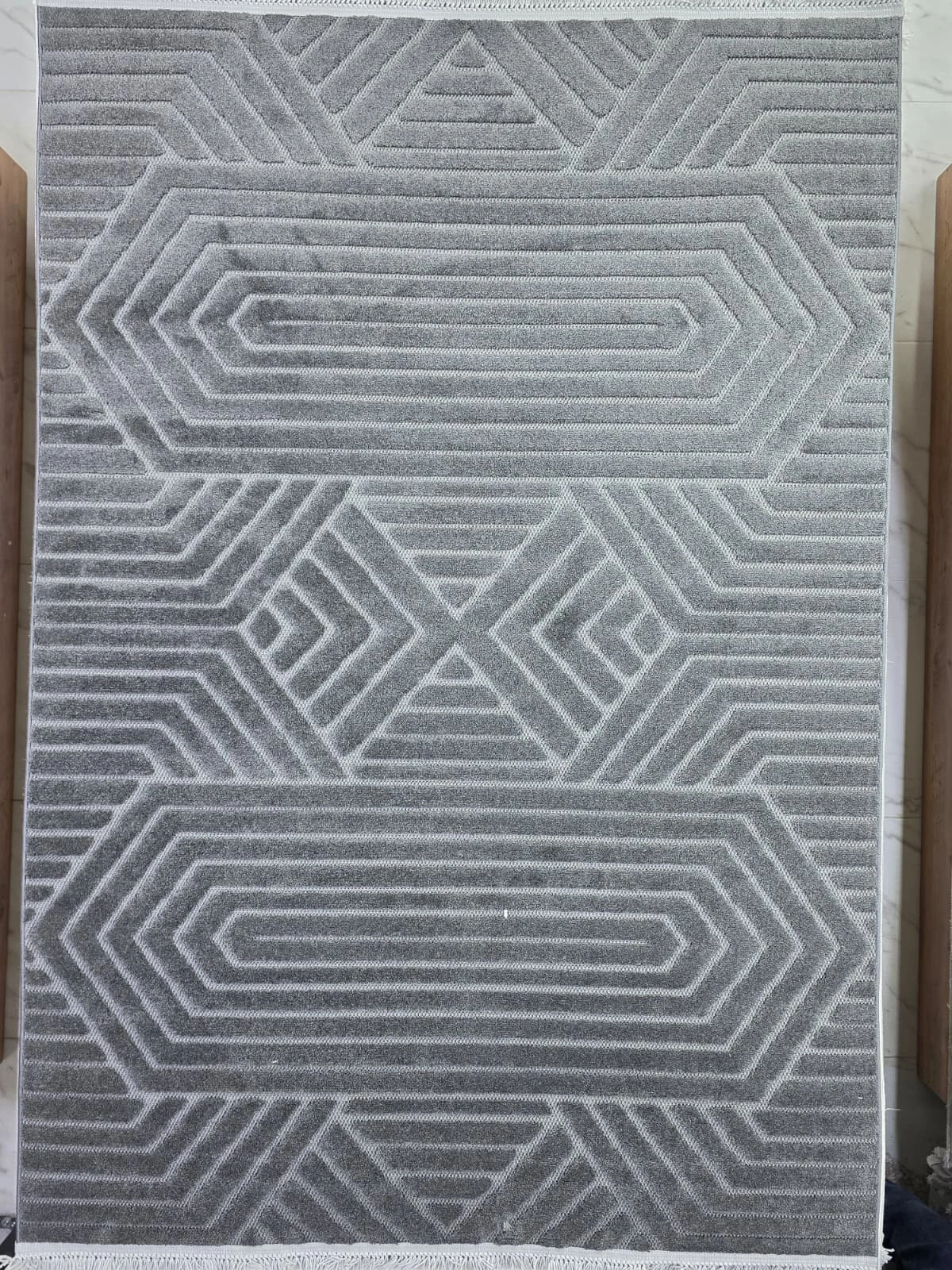 Excellence Level EN140P Antrasit Geometrik Salon Halısı 150x220 - Çerçeveli Desen Saçaklı