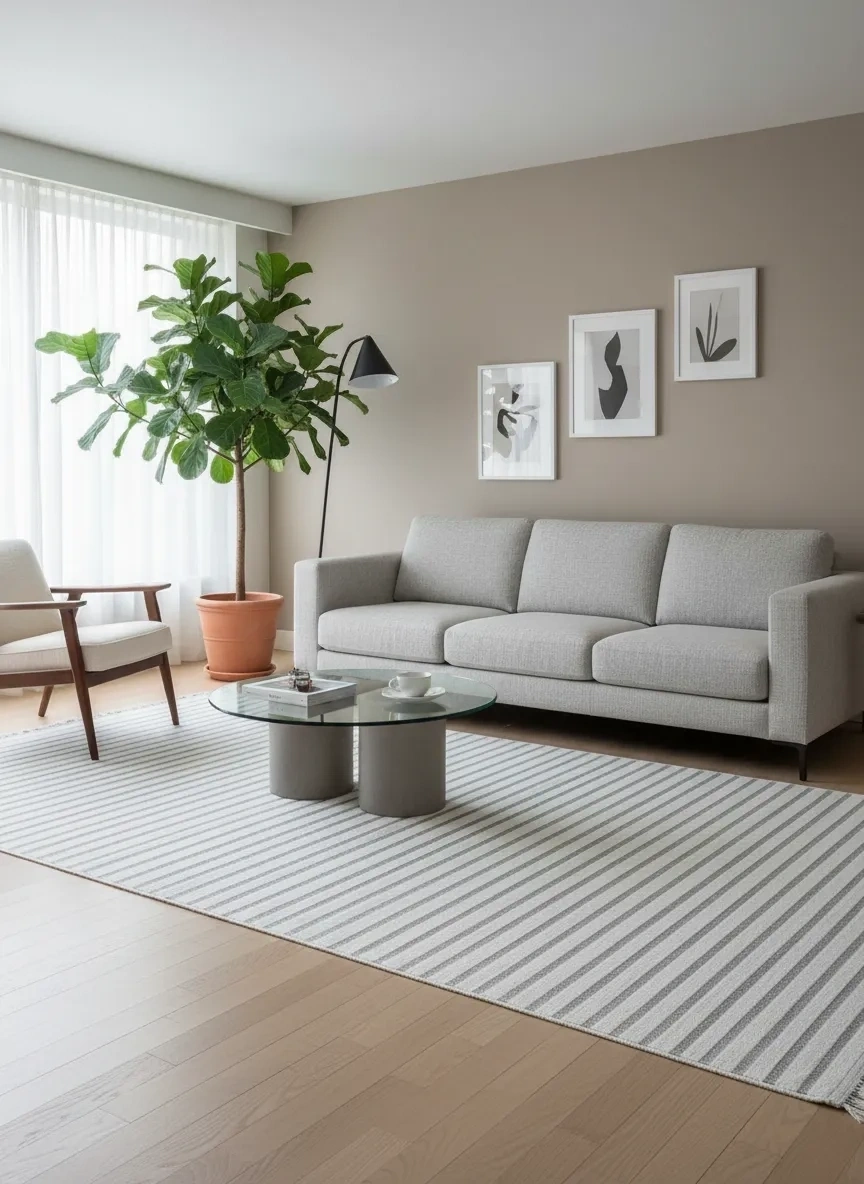 Excellence Level EN207P Gri Çizgili Salon Halısı 150x220 - Modern Skandinav Saçaklı