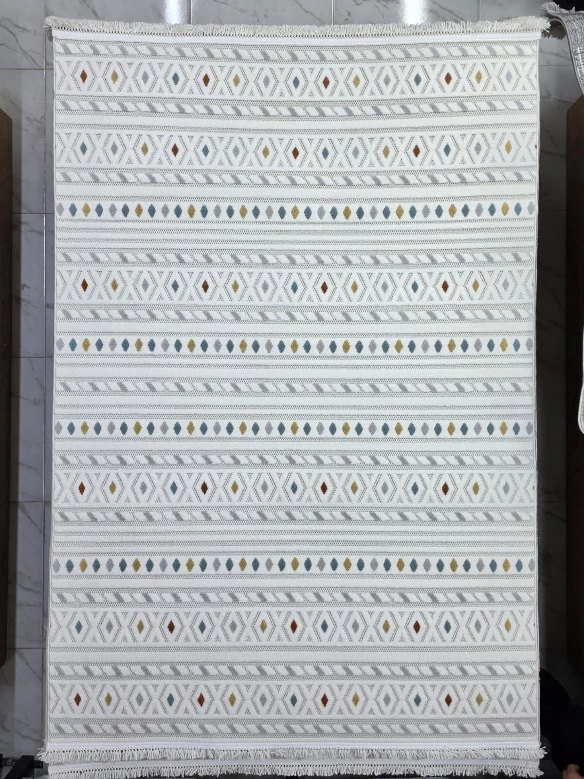 Excellence Level EN230P Çok Renkli Bohem Halı 150x220 - Elmas Desen Saçaklı