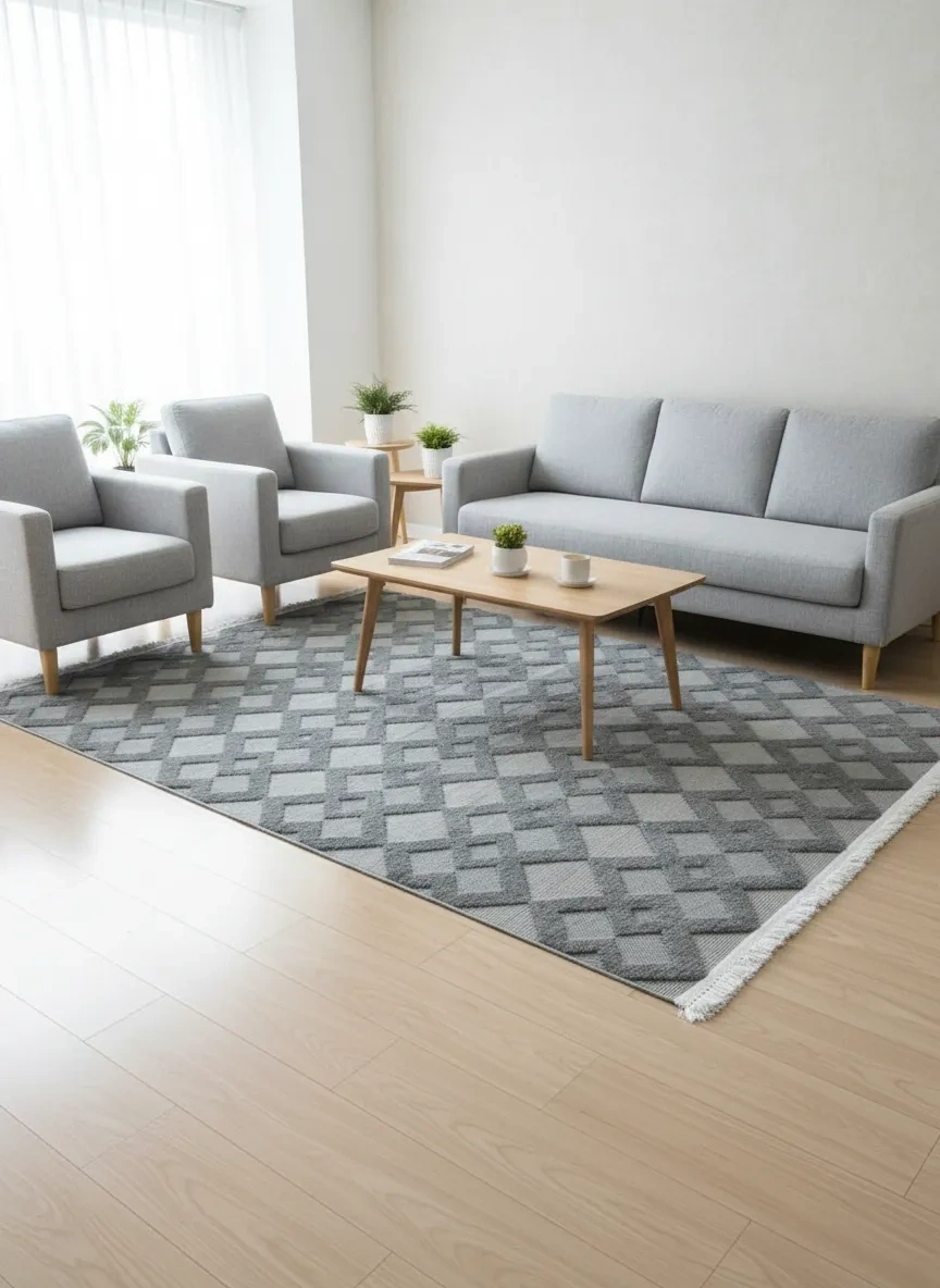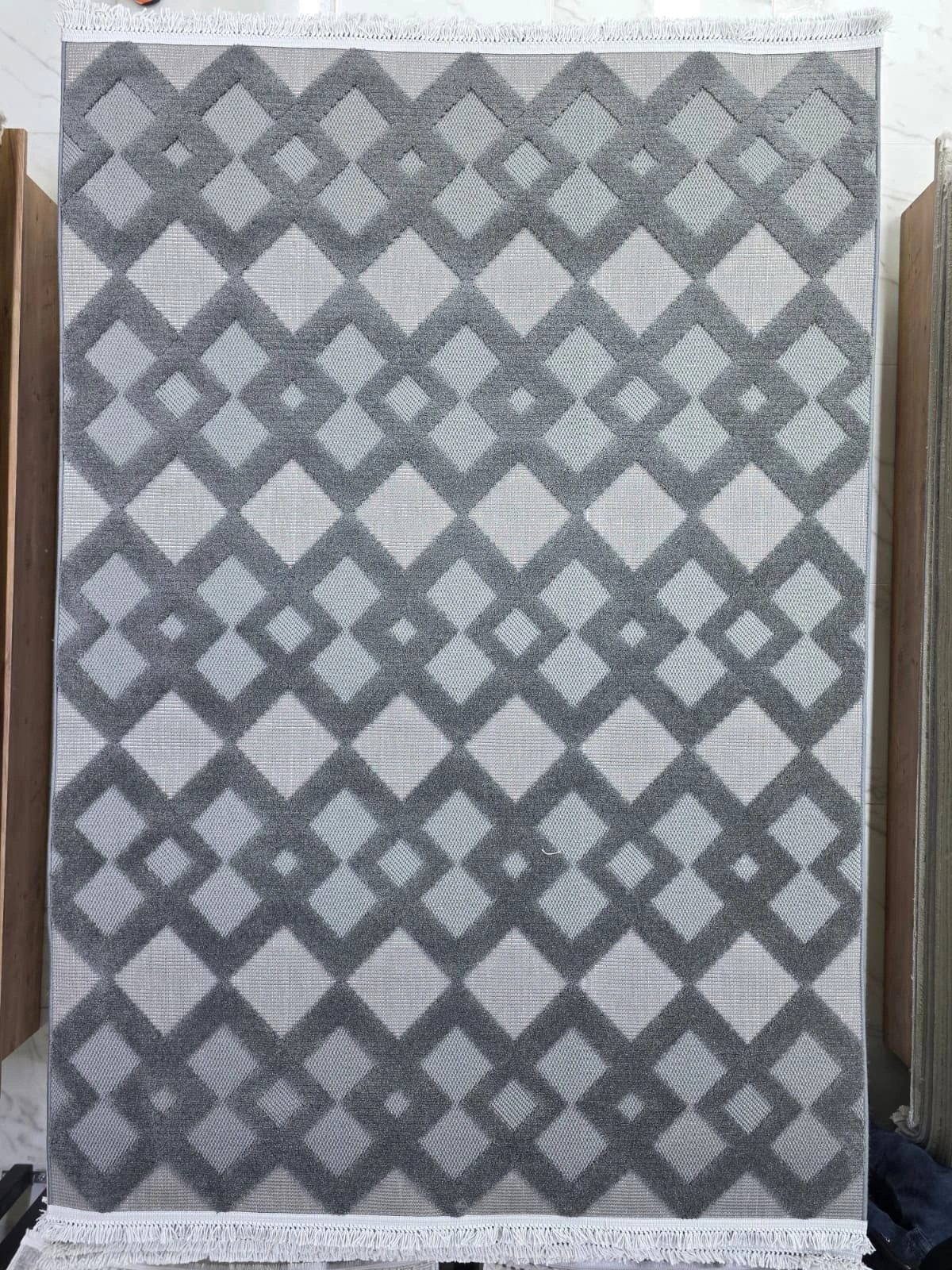 Excellence Level EN261P Antrasit Geometrik Salon Halısı 150x220 - Elmas Desen Saçaklı