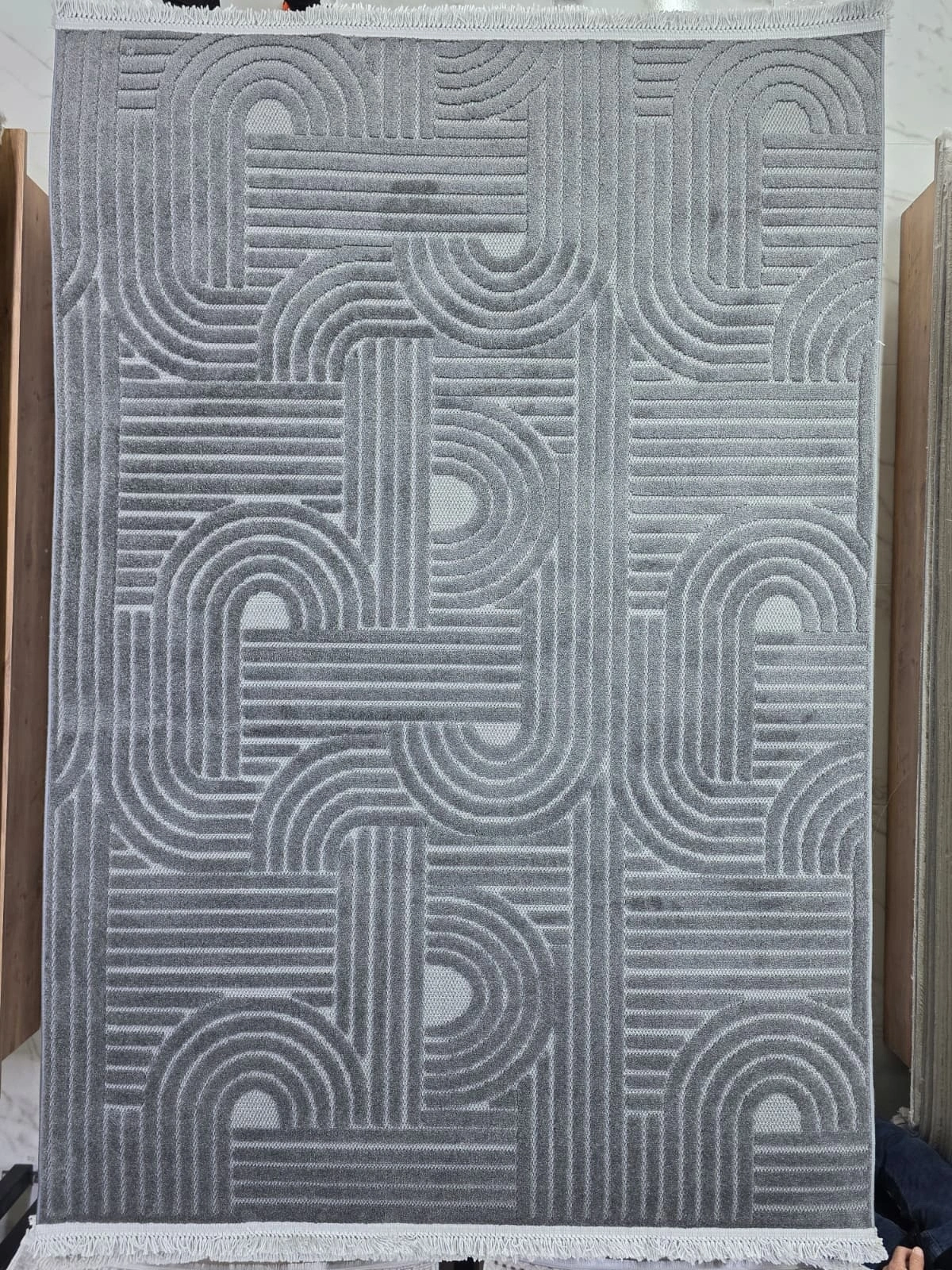 Excellence Level EN270P Antrasit Labirent Kıvrım Desen Salon Halısı 150x220 — Peluş Saçaklı