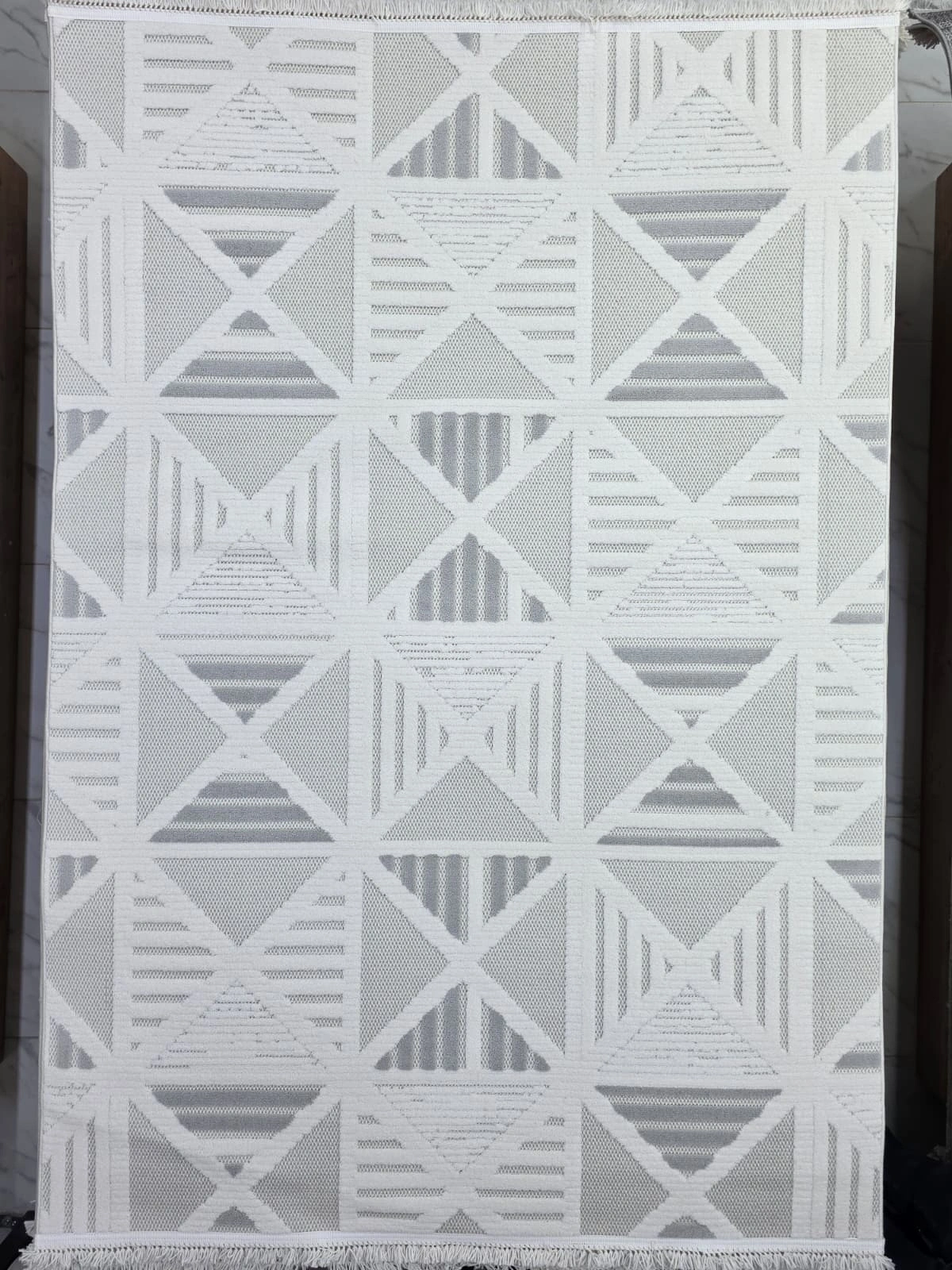 • Bu halı saçaklı yapısıyla şık bir görünüm sunar; robot süpürge dostudur, anti-alerjenik özelliği sayesinde sağlıklı bir ortam sağlar, leke tutmaz yüzeyi ile bakımı kolaydır ve makinede yıkanabilir. Excellence koleksiyonunun bu krem tonlu, geometrik desenli, üçgen desenli modeliyle yaşam alanlarınıza hem estetik hem işlevsel bir dokunuş katın.