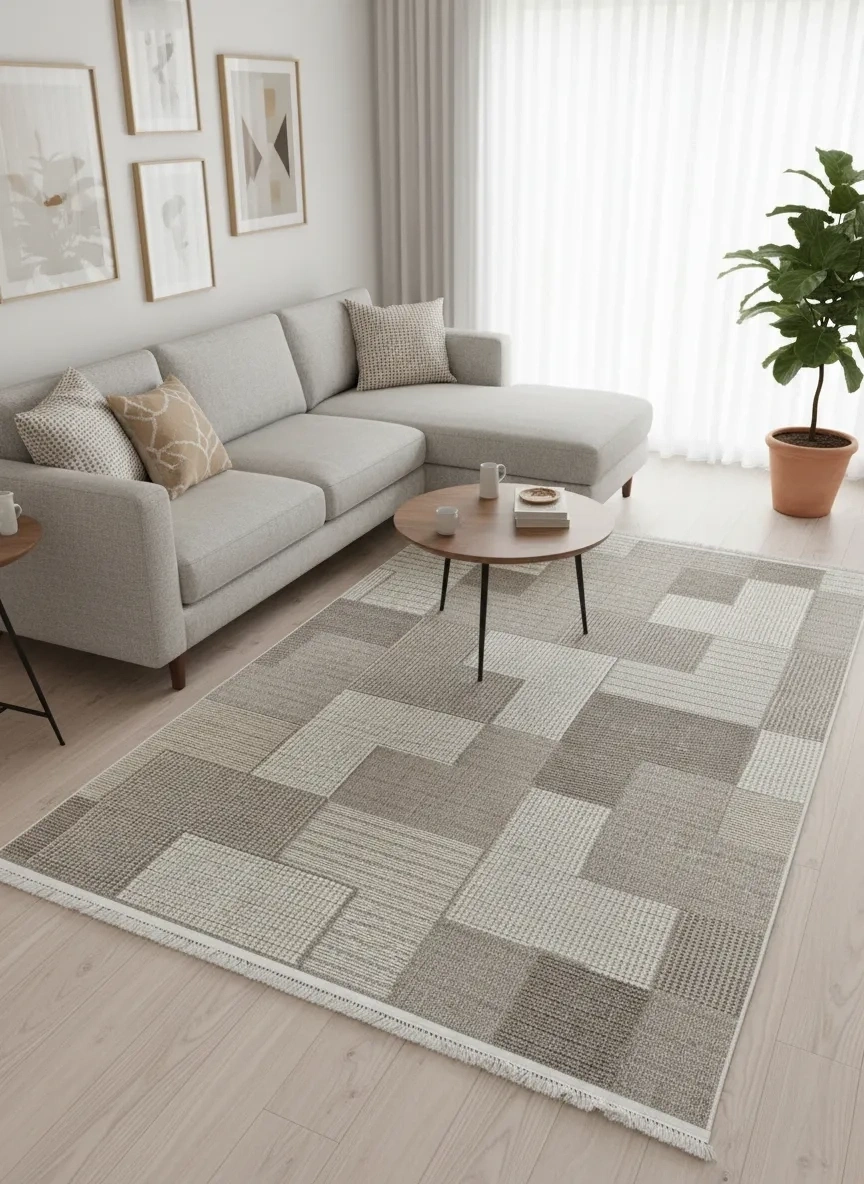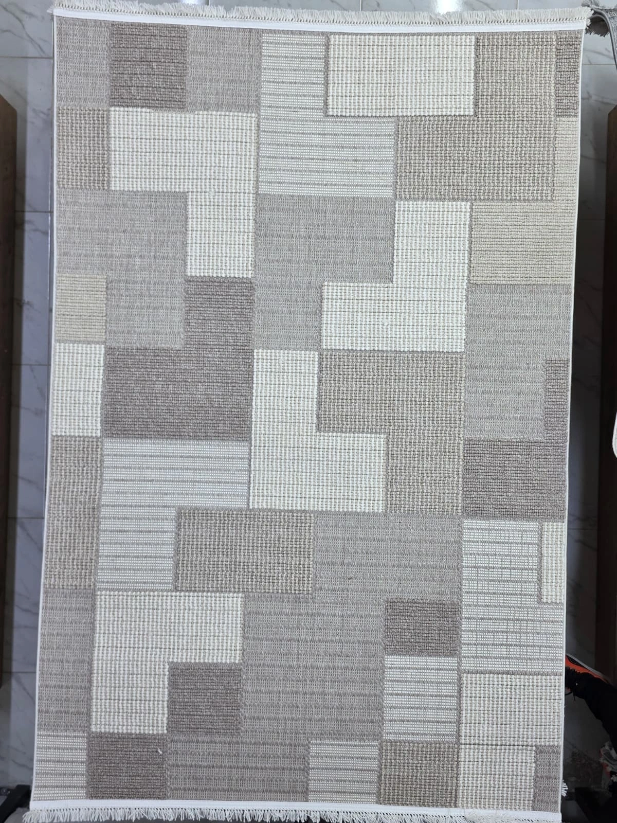 Excellence Narbe NB03 Krem Vizon Patchwork Blok Salon Halısı 150x220 — Kare Blok Saçaklı