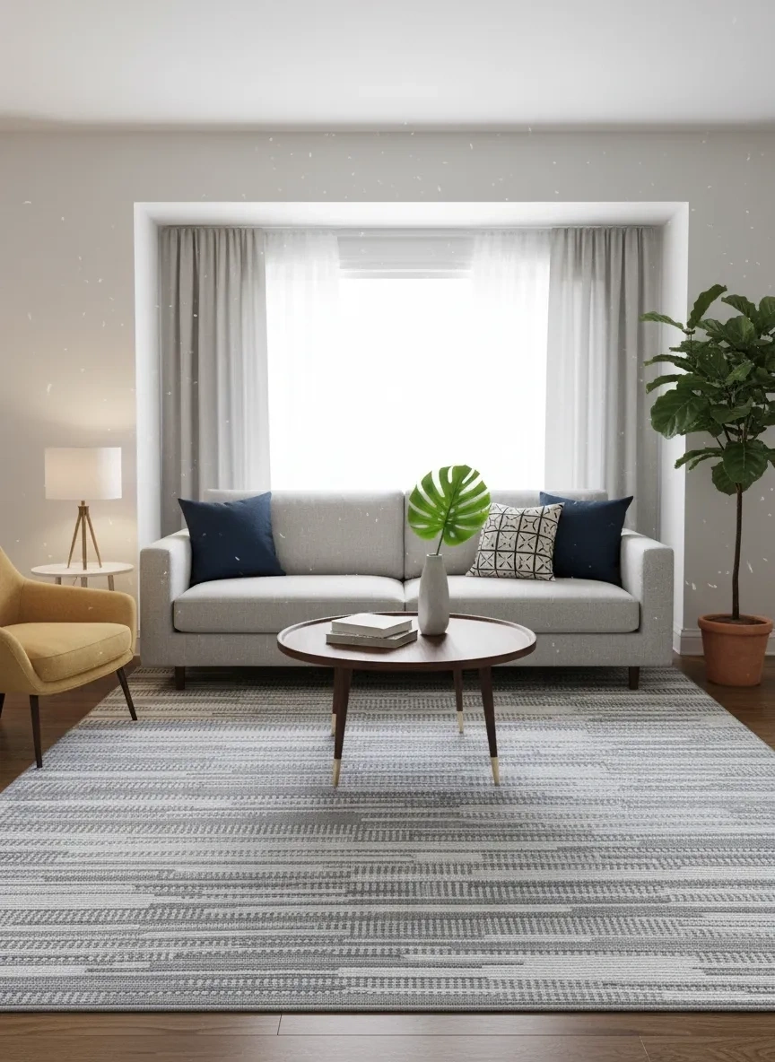 • Bu halı saçaklı yapısıyla şık bir görünüm sunar; robot süpürge dostudur, anti-alerjenik özelliği sayesinde sağlıklı bir ortam sağlar, leke tutmaz yüzeyi ile bakımı kolaydır ve makinede yıkanabilir. Krem renk seçeneği ve çizgili, soyut desenli yapısıyla mekânınızı yeniden tanımlayan bu 150x220 boyutunda ideal ölçüleriyle halı, uzun yıllar ilk günkü görünümünü korur.
