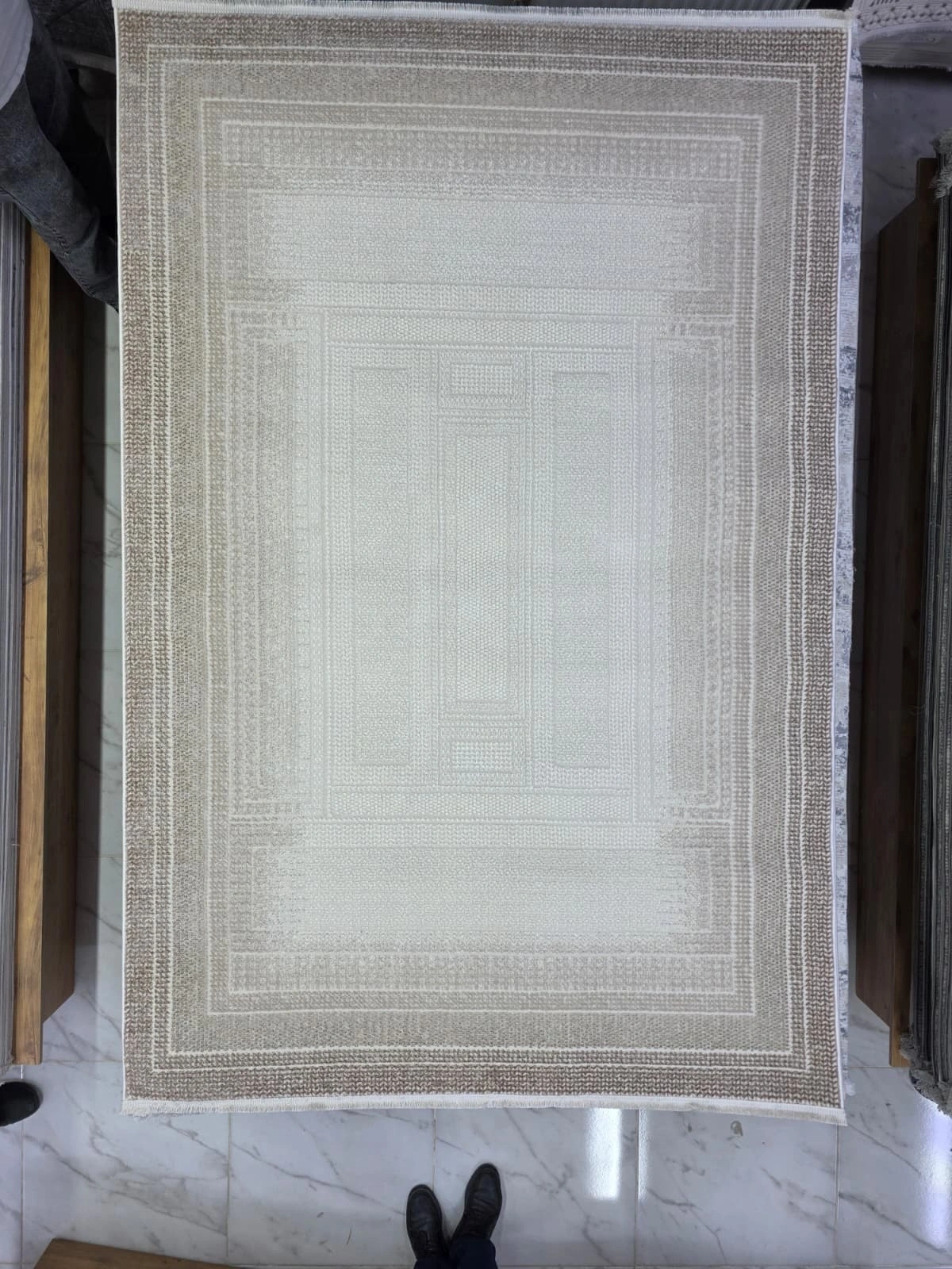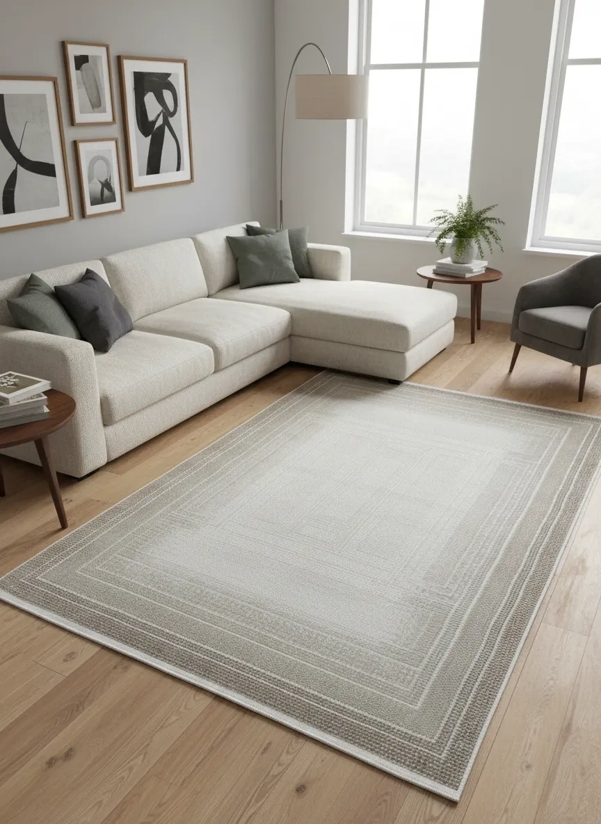 Gümüşsu 12324C Kahve Halı, sade ve zarif çerçeve deseniyle göz yormayan, huzurlu bir atmosfer yaratır. Krem zemin üzerinde kahve tonlarında iç içe dikdörtgenlerden oluşan tasarım, her tür dekorasyonla uyum sağlar.
