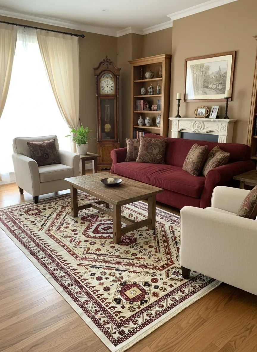 Hereke Classic 2350C Krem Kazak Geometrik Halı | 200x290 cm | Hereke Kalitesi | Salon Halısı | Hereke Halı Fiyatları