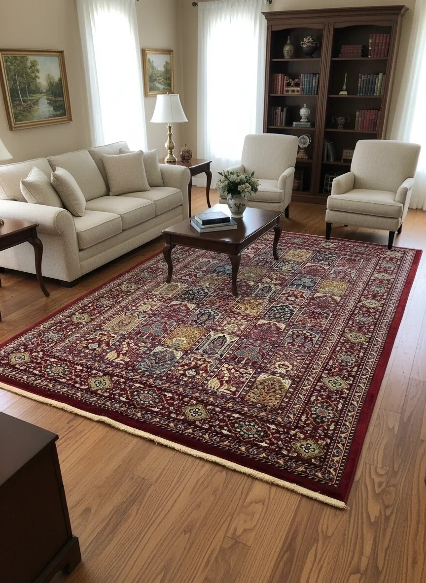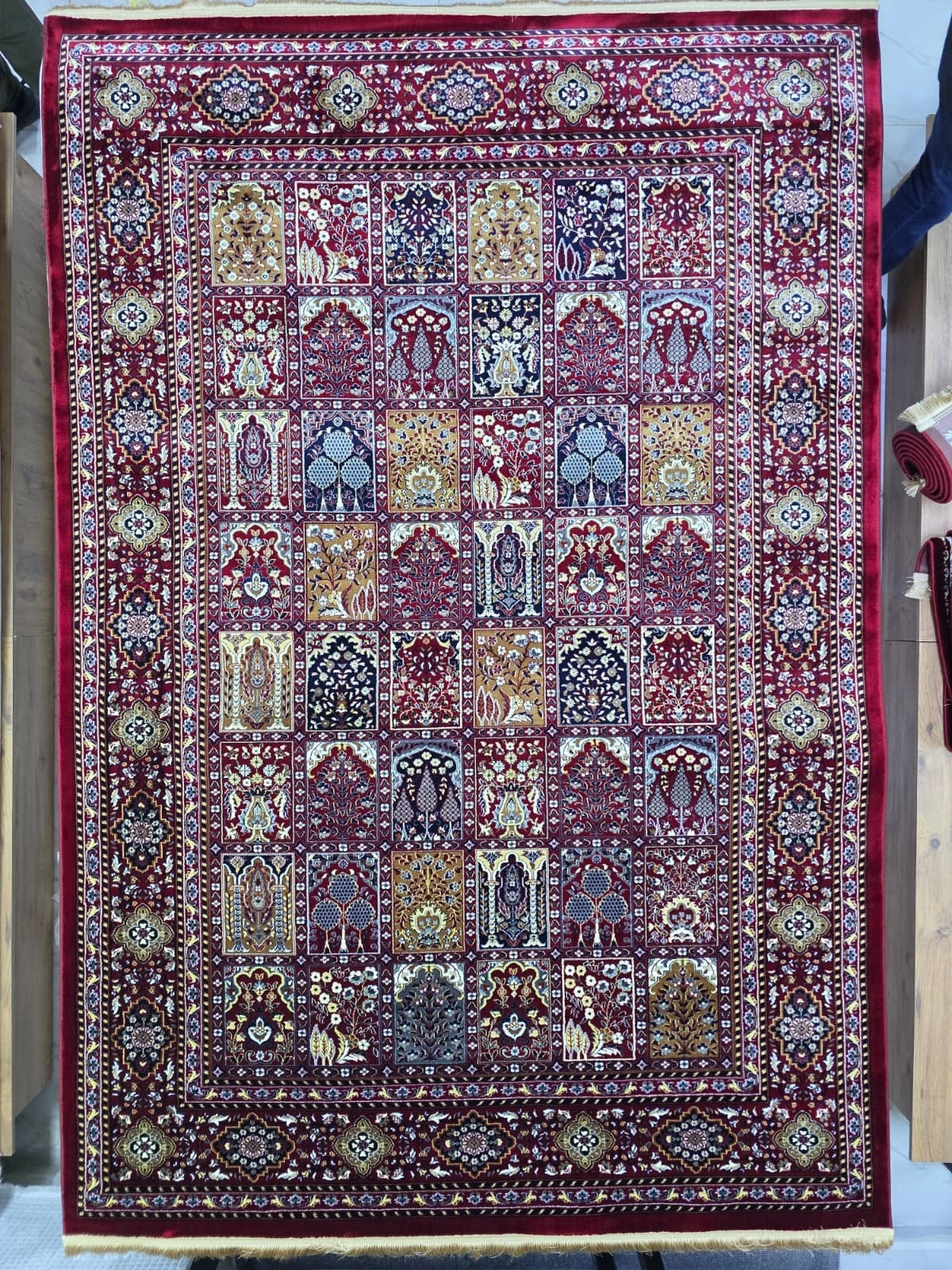 Hereke Classic 3078L Kırmızı Bahçe Bölmeli Halı | 200x290 cm | Hereke Kalitesi | Büyük Salon Halısı | Hereke Halı Fiyatları