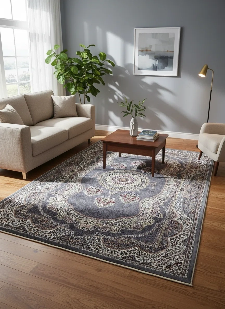 Hereke Classic 3970L Gri Krem Madalyonlu Klasik Halı | 200x290 cm | Hereke Kalitesi | Salon Halısı | Gri Halı Fiyatları