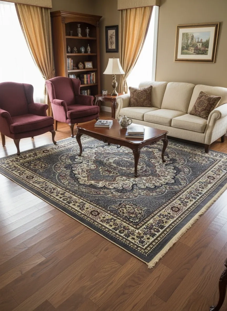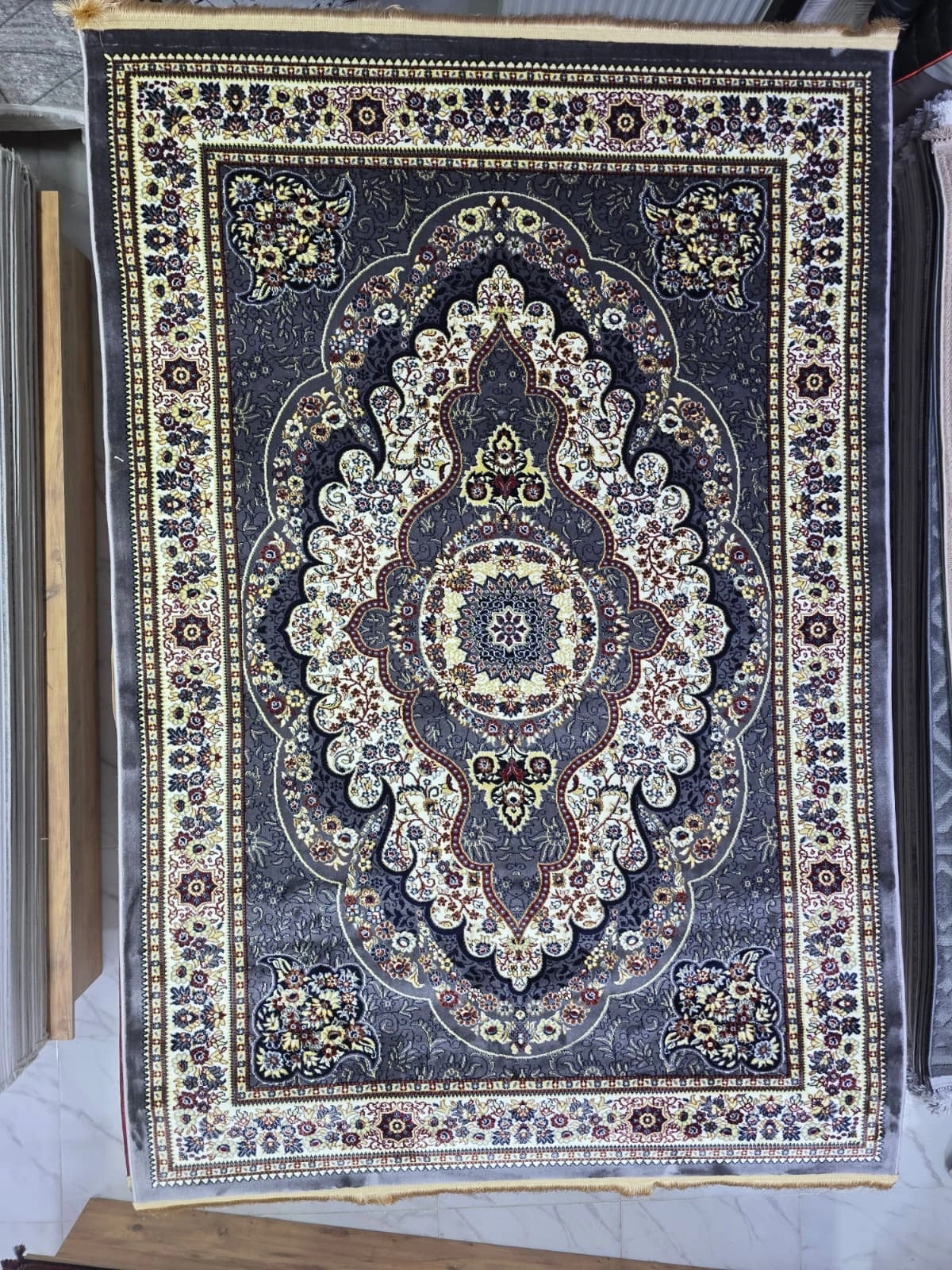 • Hereke Klasik 8356C Koyu Gri, kadifemsi koyu gri zemin üzerinde altın sarısı yoğun arabesk motiflerinin oluşturduğu devasa madalyon ve köşe kompozisyonuyla Hereke halıcılık geleneğinin ihtişamını taşıyan görkemli bir salon halısı. Altın-gri kontrastın yaratığı drama ve kadife doku, 160x230 cm boyutunda mekânınıza saray salonlarının havasını katıyor.
