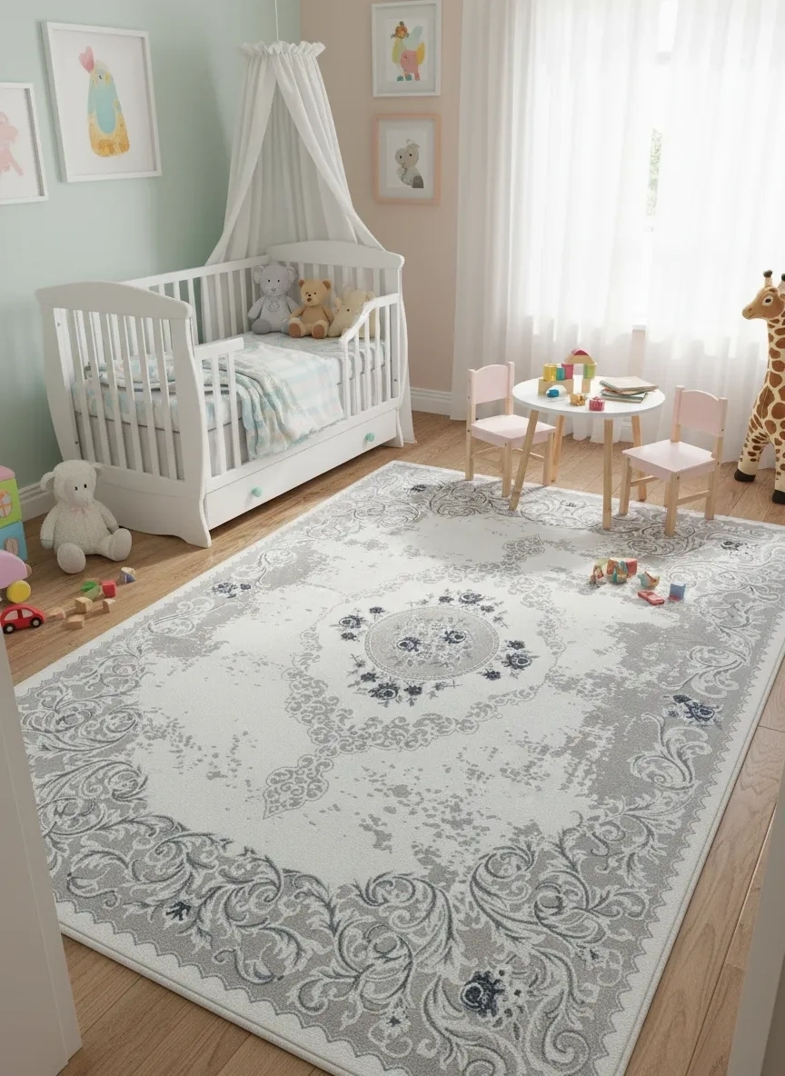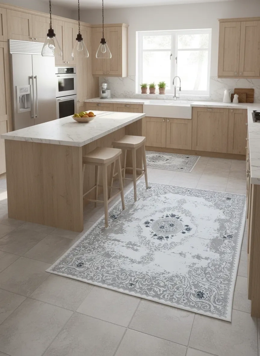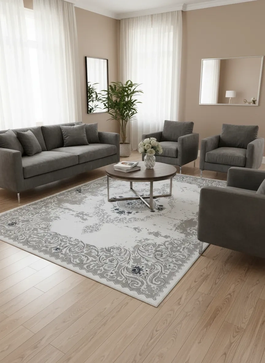 Odak İnci H5445A Lacivert-Beyaz Halı, gri zemin üzerinde çiçek buketleri ve arabesk kıvrımların oluşturduğu sofistike klasik-vintage bir kompozisyonu yansıtır. Lacivert ve gri tonlarındaki çiçek motifleri, mekânlara köklü bir zarafet ve derinlik katar; oturma odası, yemek odası ve misafir alanları gibi temsil mekânlarında özellikle tercih edilir. Klasik çiçek deseninin vintage yorumu, bu halıyı hem geleneksel hem de modern tarzda kullanılabilir kılar. Fransız şato, İngiliz klasik ve eklektik iç mimari tarzlarında zemin tasarımının en önemli unsuru haline gelir. 200x280 cm ölçüsü ve Odak İnci serisinin kaliteli üretimi, bu zamansız halıyı uzun yıllar kullanılabilir kılar.
