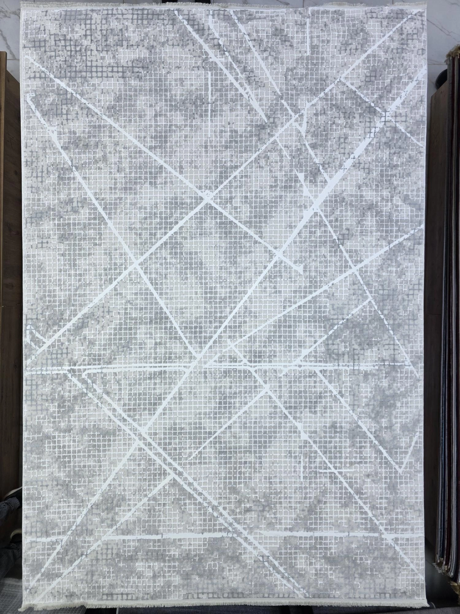 Odak İnci H7399A Gri-Beyaz Halı 200x280 | Geometrik Çapraz Çizgili Modern Halı