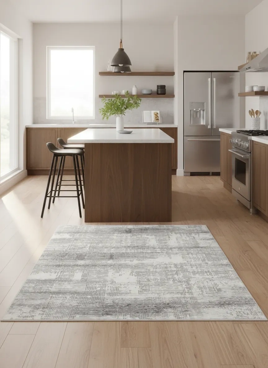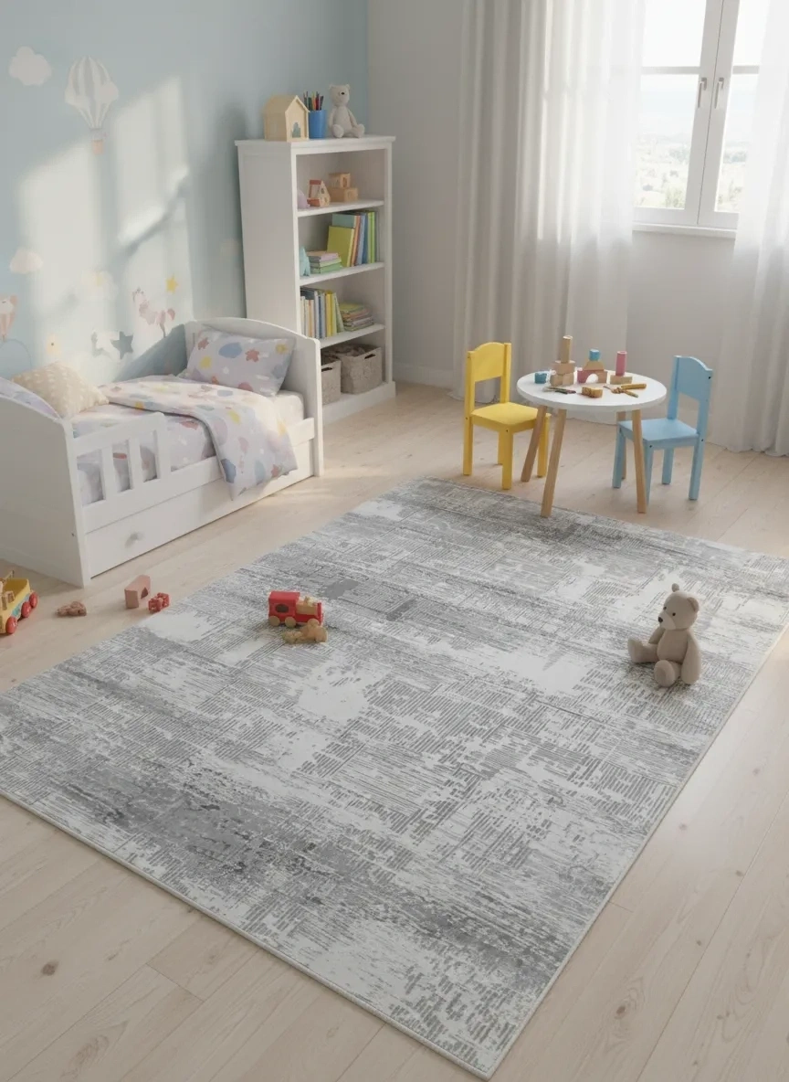 Odak Narin P2384A Gri-Beyaz Halı, beyaz zemin üzerinde gri tonlarında soyut çizik ve leke efektlerinin oluşturduğu çağdaş bir kompozisyon sunar. Bu modern soyut desen, oturma odası, yemek odası, antre, koridor ve çalışma odası gibi evin her alanında sofistike ve sanatsal bir zemin ifadesi yaratır. Soyut desenin gri-beyaz kombinasyonu, mekânı baskılamadan tamamlayan evrensel bir nötr zemin sunarken aynı zamanda kendine özgü sanatsal bir ifade taşır. Gri, beyaz, antrasit ve renkli aksanlı dekorasyonların tamamıyla uyumlu çalışır. 200x280 cm ölçüsü ve Odak Narin serisinin kaliteli üretimi, bu halıyı uzun soluklu ve şık bir tercih yapar.