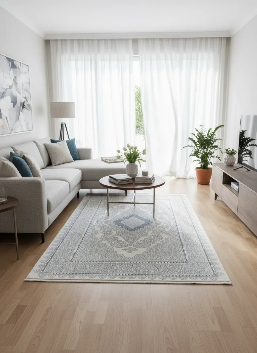 Odak Narin P7068 Gri Mavi Halı, geleneksel madalyon ve arabesk bordür deseniyle Türk halıcılık sanatının en güzel örneklerinden birini sunmaktadır. Krem zemin üzerinde gri-mavi tonların birbiriyle uyumu, hem klasik hem de modern dekorasyonlara mükemmel uyum sağlar.