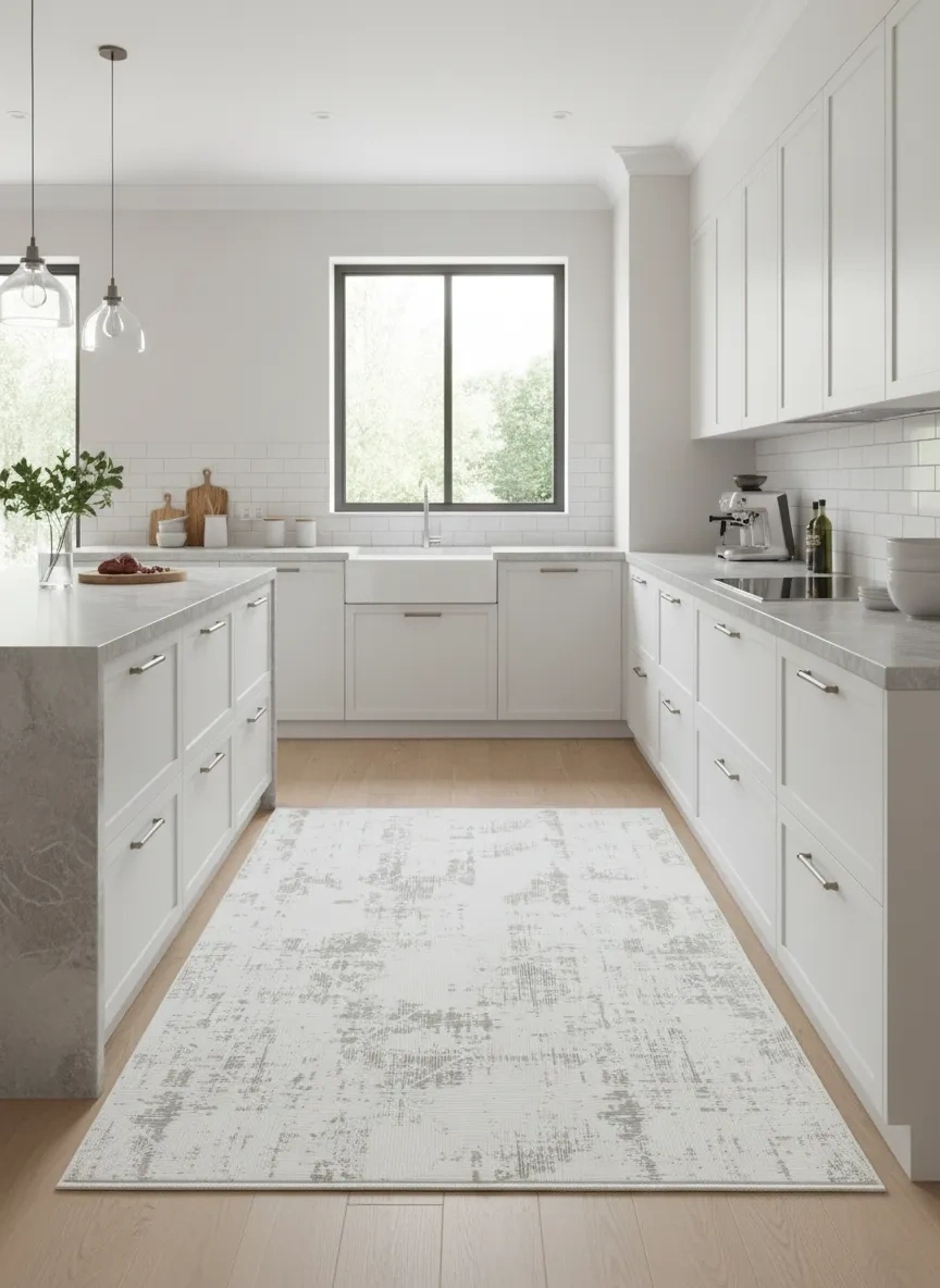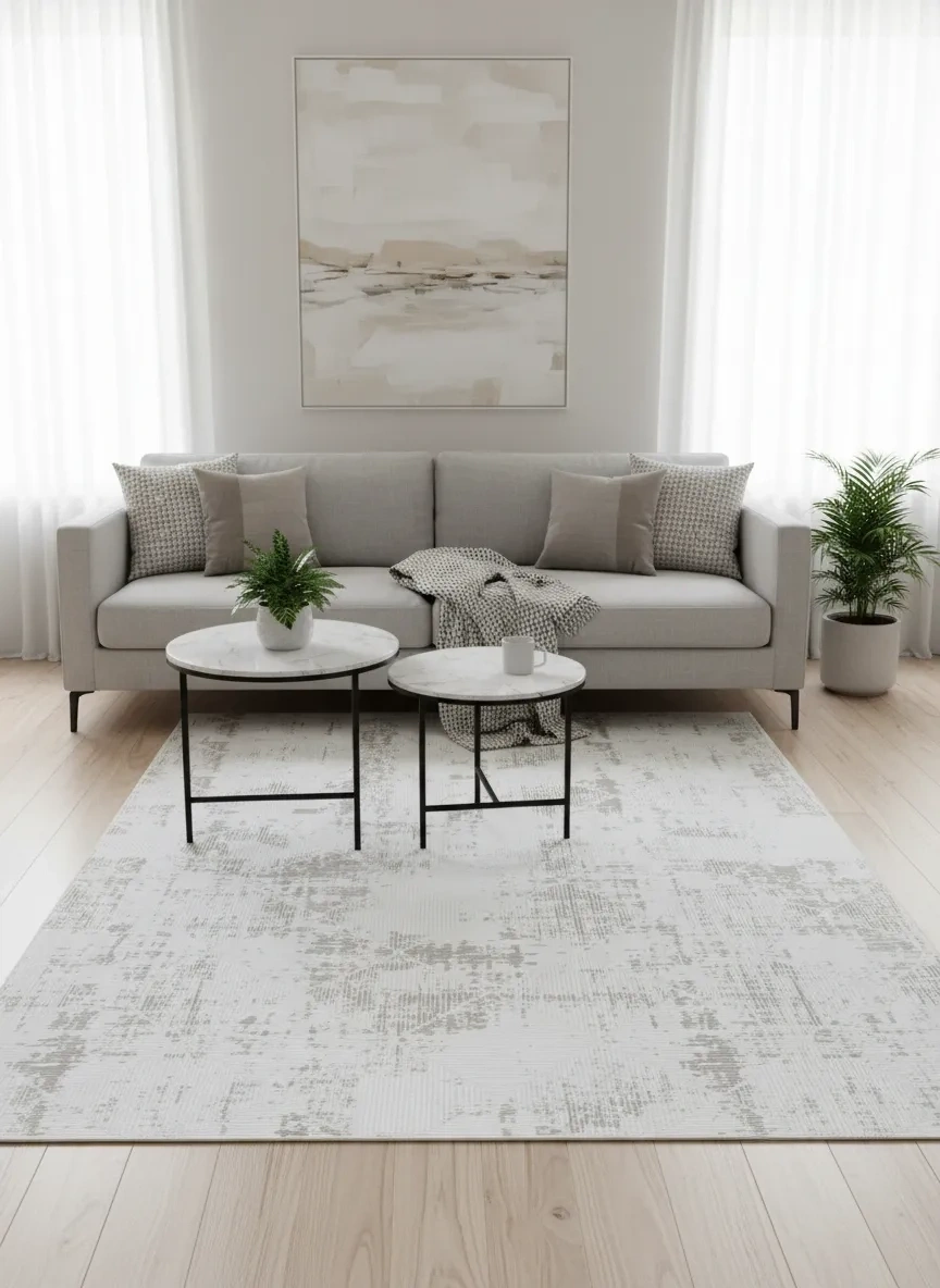 Odak Narin P7349 Bej Halı, beyaz zemin üzerinde bej ve krem tonlarının soyut dağılımından oluşan eskitme vintage etkisiyle mekânlara zamansız bir karakter ve derinlik katar. Oturma odası, yemek odası, antre, koridor, yatak odası ve mutfak önü gibi evin her alanında kullanılabilen bu halı, nötr tonuyla her dekorasyona kolayca uyum sağlar. Vintage soyut desenin bej-beyaz versiyonu, hem sakin hem de karakterli bir zemin deneyimi sunar. Bohem, minimalist, Skandinav ve modern tarzda dekore edilmiş mekânlarda olağanüstü bir tamamlayıcı olur. 200x280 cm ölçüsü ve Odak Narin serisinin dayanıklı üretimi ile uzun yıllar şıklığını korur.