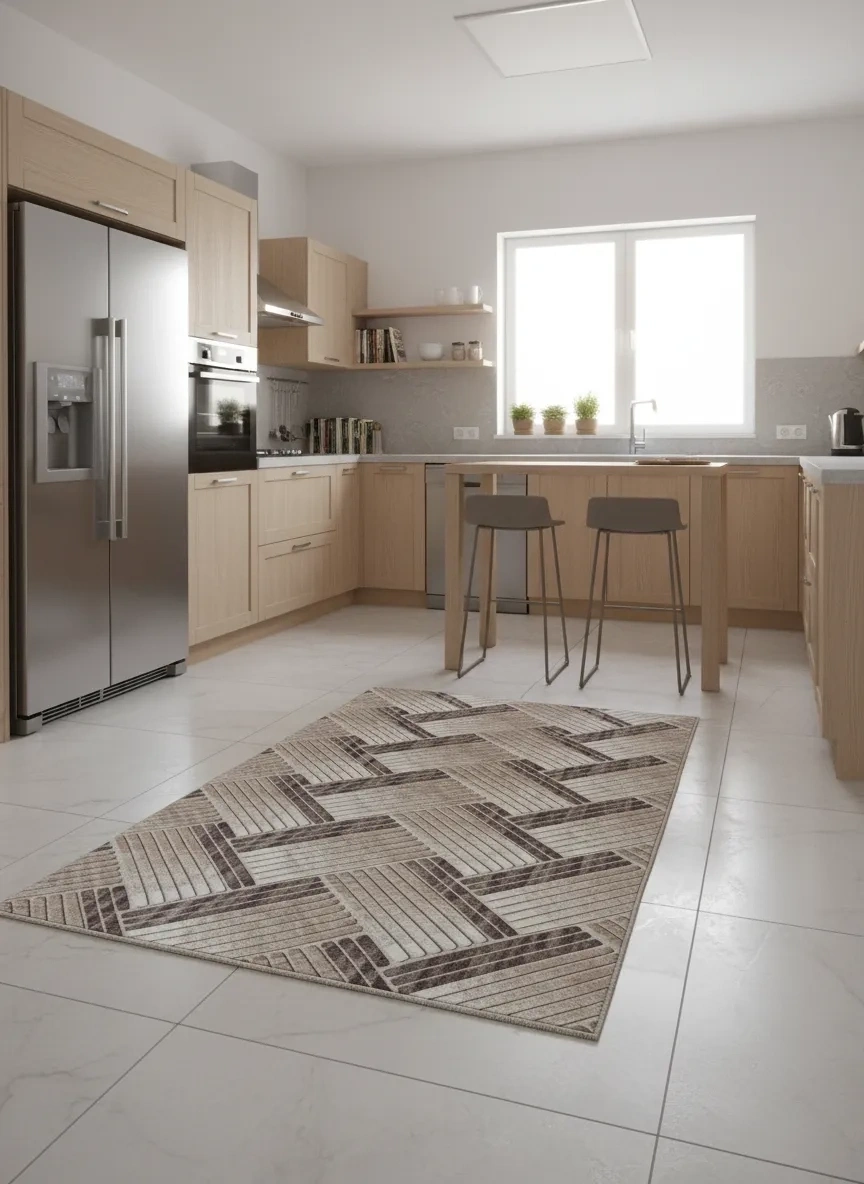 • Jel taban kaymaz yapısıyla şık bir görünüm sunar; robot süpürge dostudur, anti-alerjenik özelliği sayesinde sağlıklı bir ortam sağlar, leke tutmaz yüzeyi ile bakımı kolaydır ve makinede yıkanabilir. Vizon renk seçeneği ve balıksırtı desenli, klasik desenli yapısıyla mekânınızı yeniden tanımlayan bu halı, uzun yıllar ilk günkü görünümünü korur. Jel taban kaymaz yapısıyla her zeminde güvenle kullanılabilir.