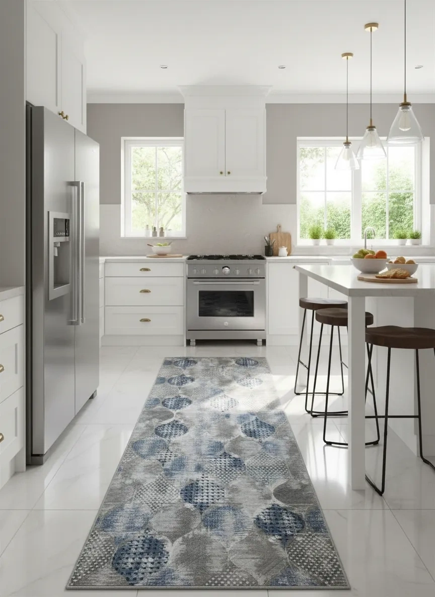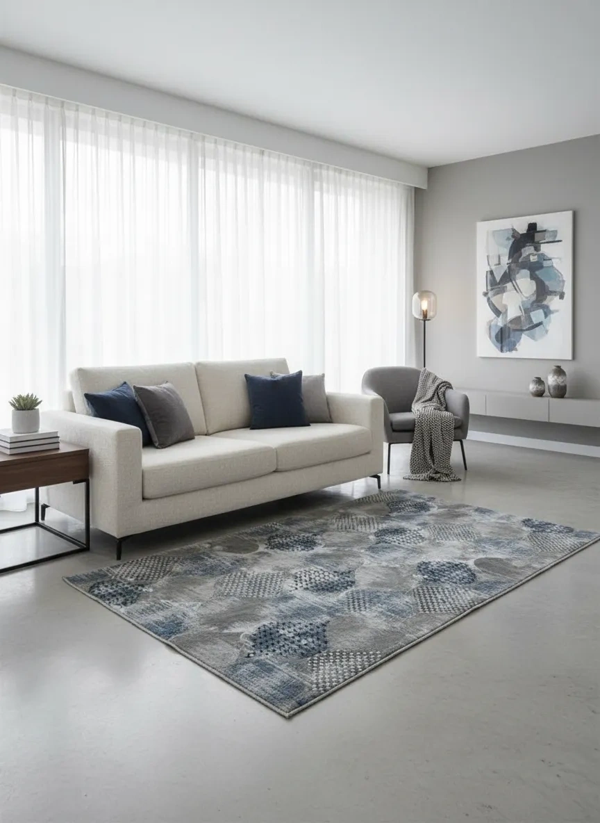 • Jel taban kaymaz yapısıyla şık bir görünüm sunar; robot süpürge dostudur, anti-alerjenik özelliği sayesinde sağlıklı bir ortam sağlar, leke tutmaz yüzeyi ile bakımı kolaydır ve makinede yıkanabilir. Sarar koleksiyonunun bu mavi-gri tonlu, bohem desenli, daire desenli modeliyle yaşam alanlarınıza hem estetik hem işlevsel bir dokunuş katın. Jel taban kaymaz yapısıyla her zeminde güvenle kullanılabilir.